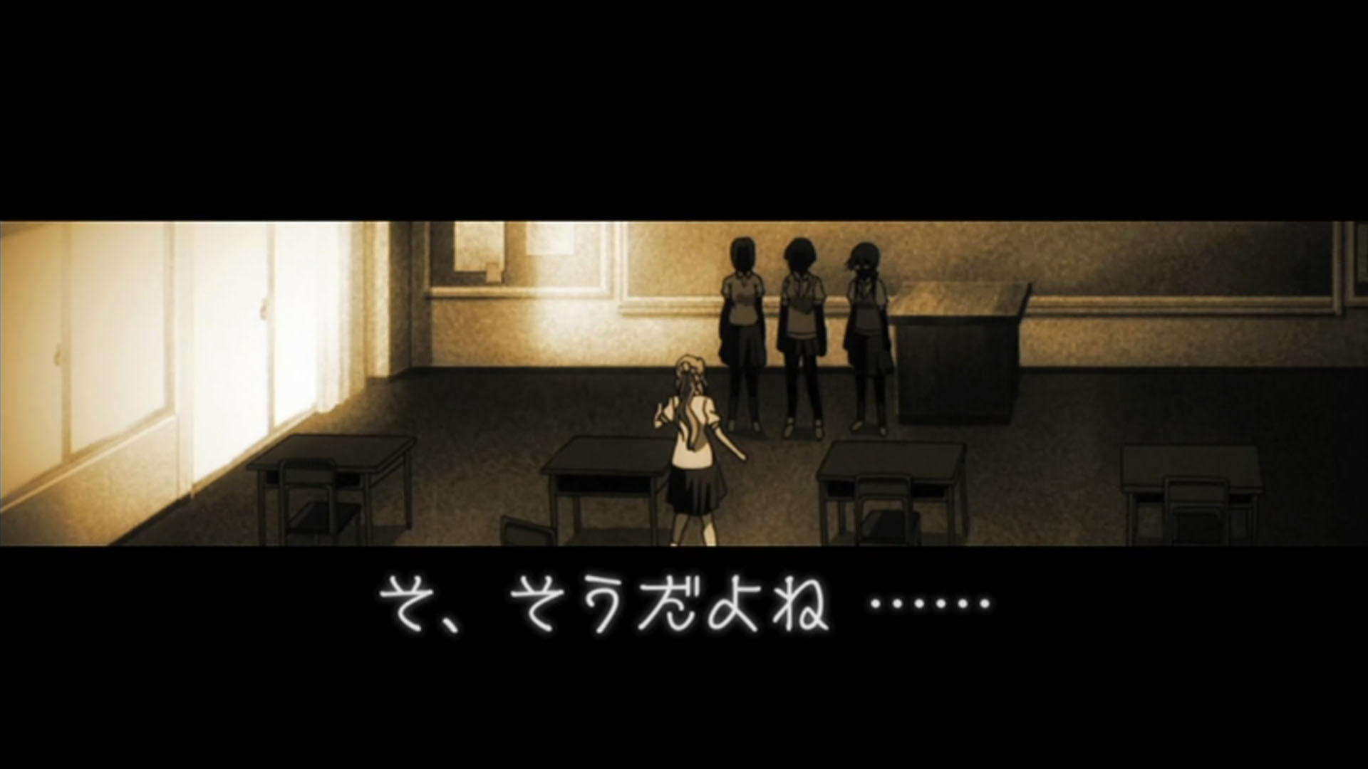 Certainly the darkest episode to date. Quite literally too since many of scenes were like just black. Figures that there would be a nice conclusion at the end, though they did not exactly alleviate the fears of the students who went nuts. But it looks like even Kirishima Yuuko was able to see Yuuko herself at the end (hinted when she apologized to Yuuko). On a side note: There wasn’t really enough Yuuko nor Kirie for my liking in this episode. But at least they did give us Kirie in them nekomimi-meido outfit once more 😛