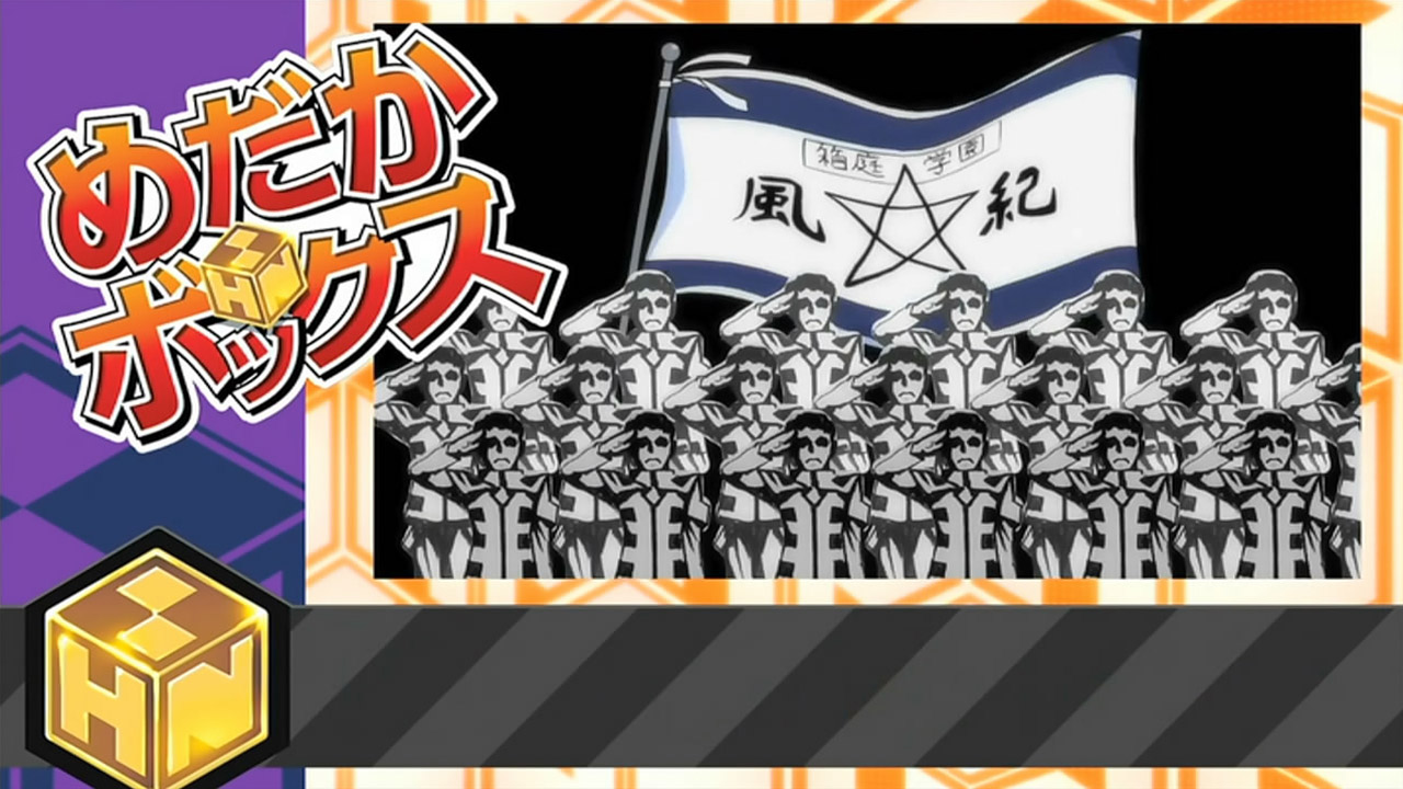 Hmm so is it confirmed this anime will only have 12 episodes? Or will it be ongoing for a while like Beelzebub was? For a long running Shonen manga, it’d make more sense to have a long running season rather than 12 episodes.Looks like the Enforcers will appear next episode. Can’t say im really fond of them. This is also the part in the manga where it went from casual seinen comedy/school life to a typical battle manga. I guess its what Bakuman taught us. Battle mangs are mainstream and lots of authors have to convert to it at some point 🙁