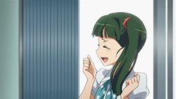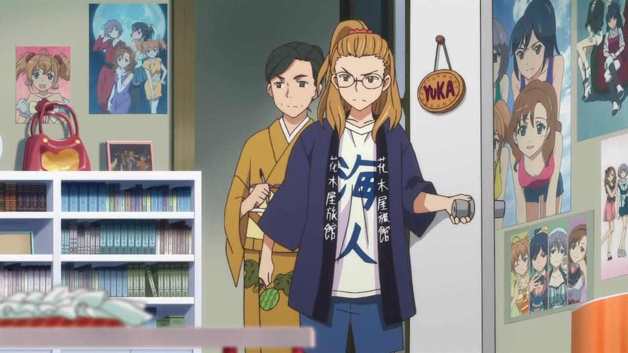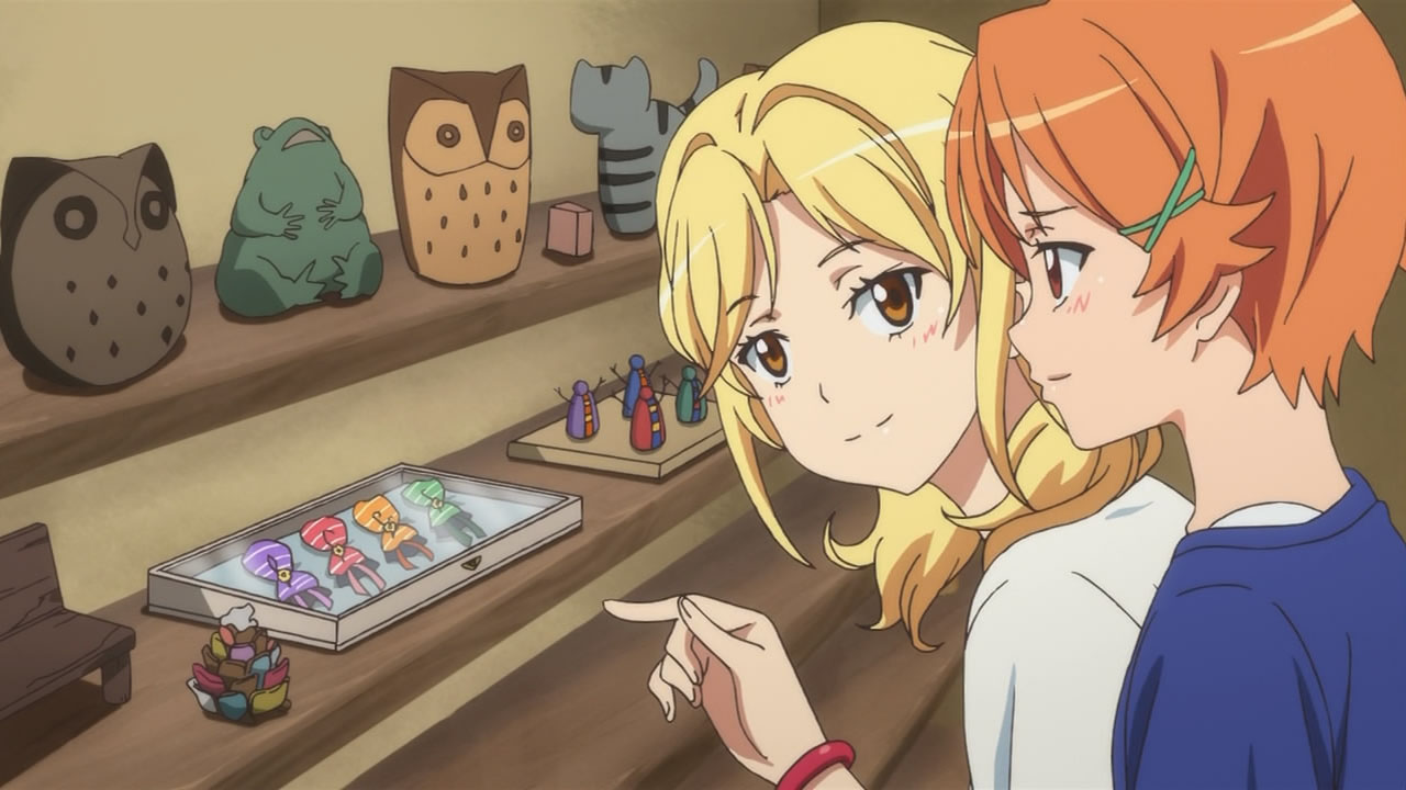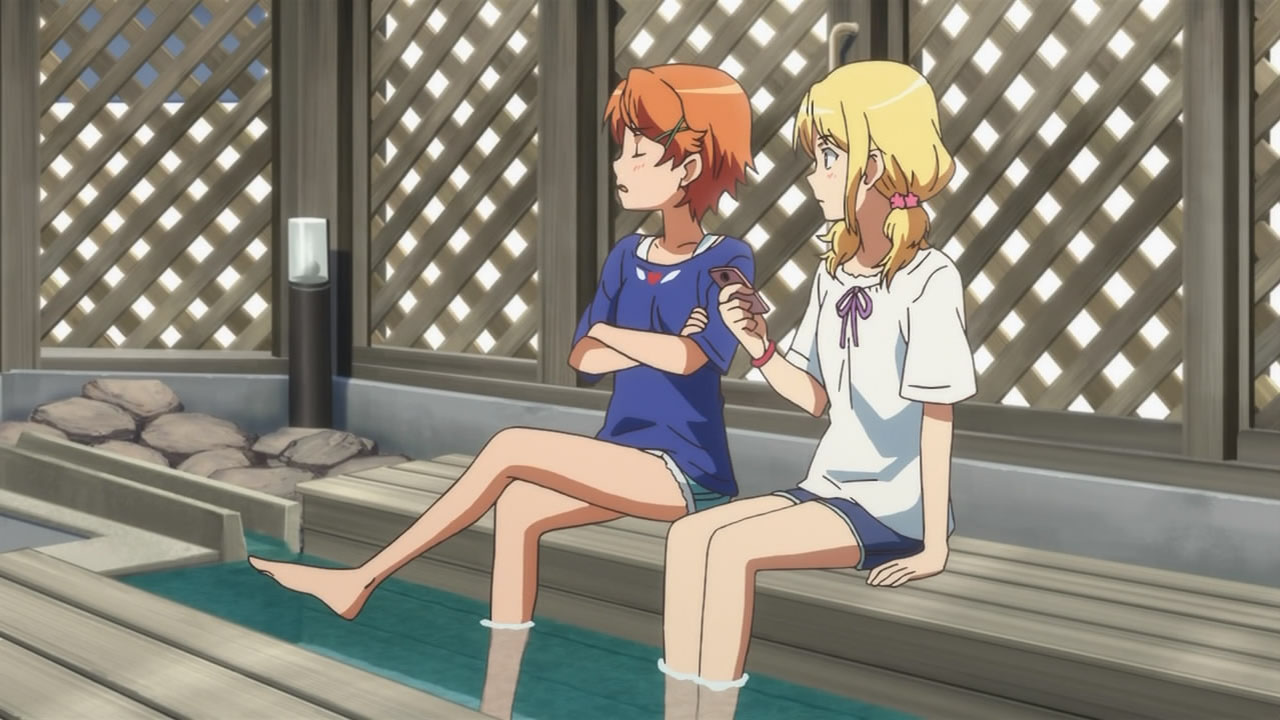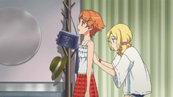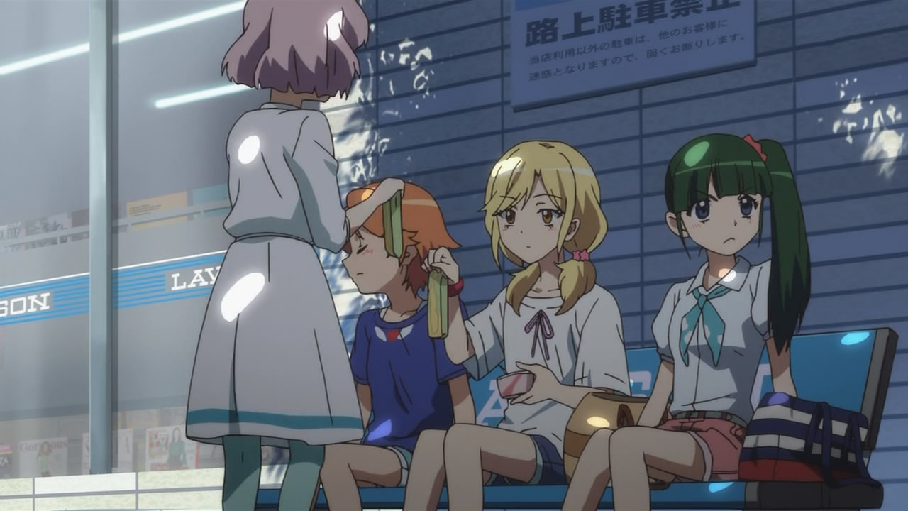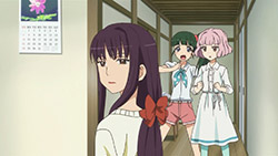After that, we were treated to the girls wandering around the town in pairs, going about little side tasks that had little bearing on the whole Natsumi and Yuka squabbling thing. Now, I realize this is slice-of-life, but there was just enough plot-like substance here to make me want them to focus on it, so when we instead took a detour to Yuka’s house so she could pick her clothes up (and run for her life freedom), it seemed rather pointless. I’m fine with slice-of-life faffing about, but I guess maybe it needs to be full slice-of-life (i.e. no plot at all) or have a tighter connection to the plot. Maybe?