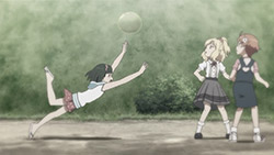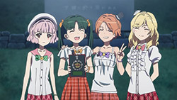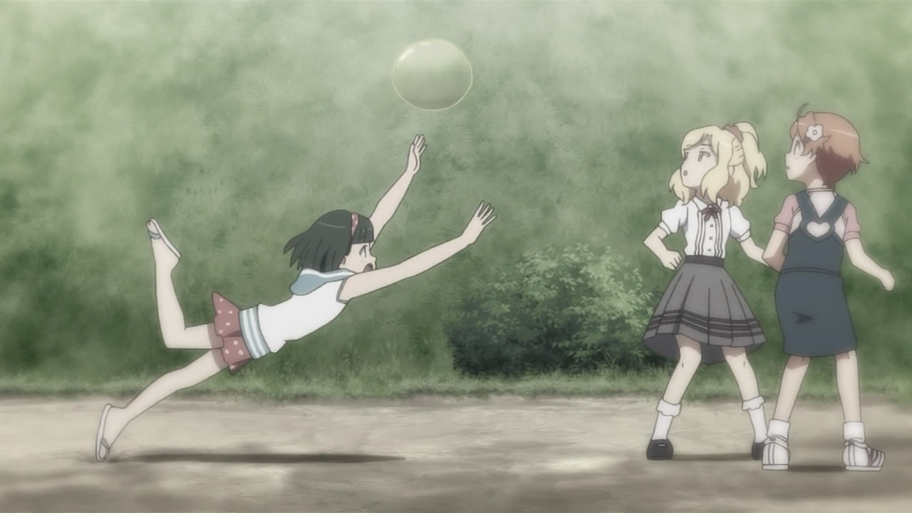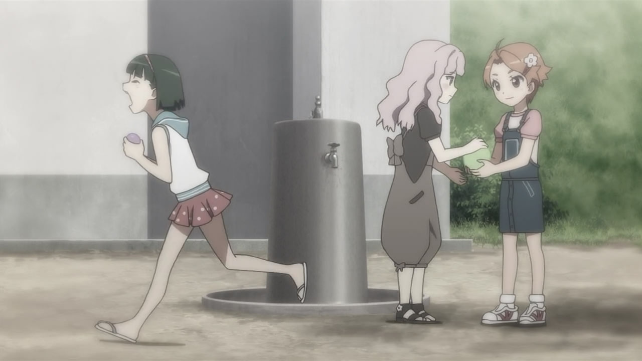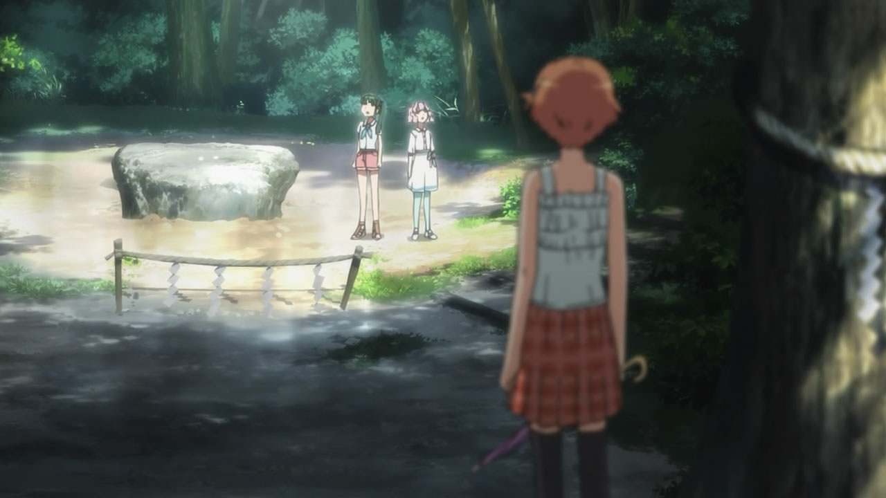 Am I the only one who wishes that Yuka would grow up sooner rather than later? I can relate to how frustrated Natsumi must have felt with Yuka’s lackadaisical attitude towards training for their performance. She was the one who was so enthusiastically urging them to enter the singing competition, and yet she takes a devil-may-care attitude towards practicing. Overall though, a nice episode that continues to flesh out the beautiful friendship of our lovable quartet. Especially that flashback of that water balloon fight. I hope Yuka can change for the better after hearing Rin’s reasoning on why Natsumi and Saki never ran away during those fights. And watching Natsumi and Saki reminiscing about the good old days made me feel a little depressed at imagining the moment when Saki will inevitably move away. All the episodes up till now seem to be steadily moving towards that conclusion, even with a magic wish granting rock in their hands. Just like how Natsumi was quite adamant they not use the rock to wish for their victory (although she seemed to waver when they rushed to the shrine), I don’t think they will use the rock to alter that fact.