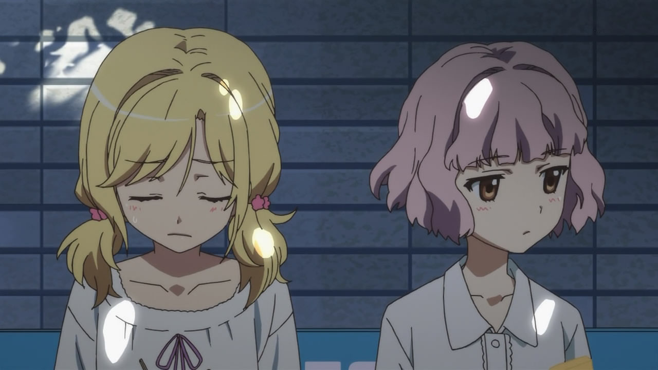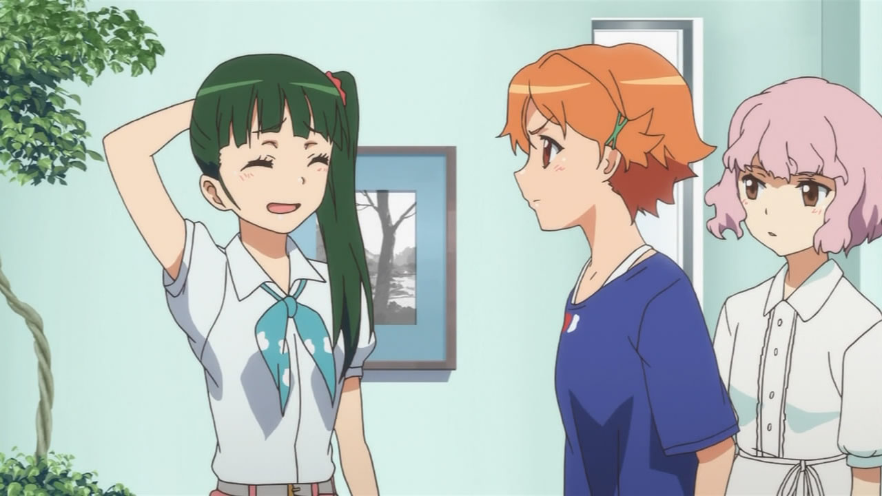 First of all, the narrative stuff. The way this episode’s story was told felt a little abrupt and scattered over all. From the very beginning they just barreled straight into the plot, forgoing the pre-OP scenes in favor of showing us Natsumi angry at Yuka inside of a minute of actual screen time. Maybe it’s just because I didn’t remember them having agreed to enter the singing competition (did that happen? Someone check for me, I’m not near my hard drives), but I feel like that could have used some build up.