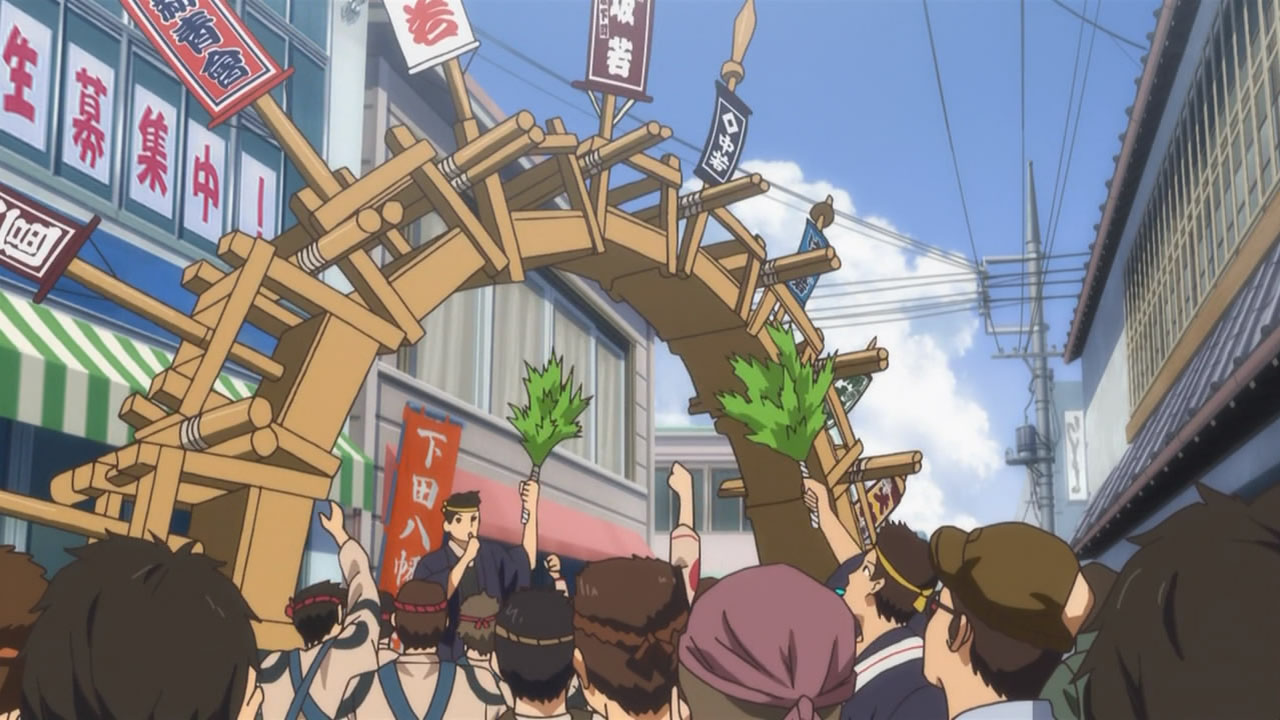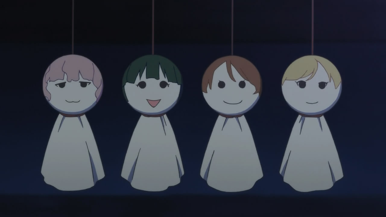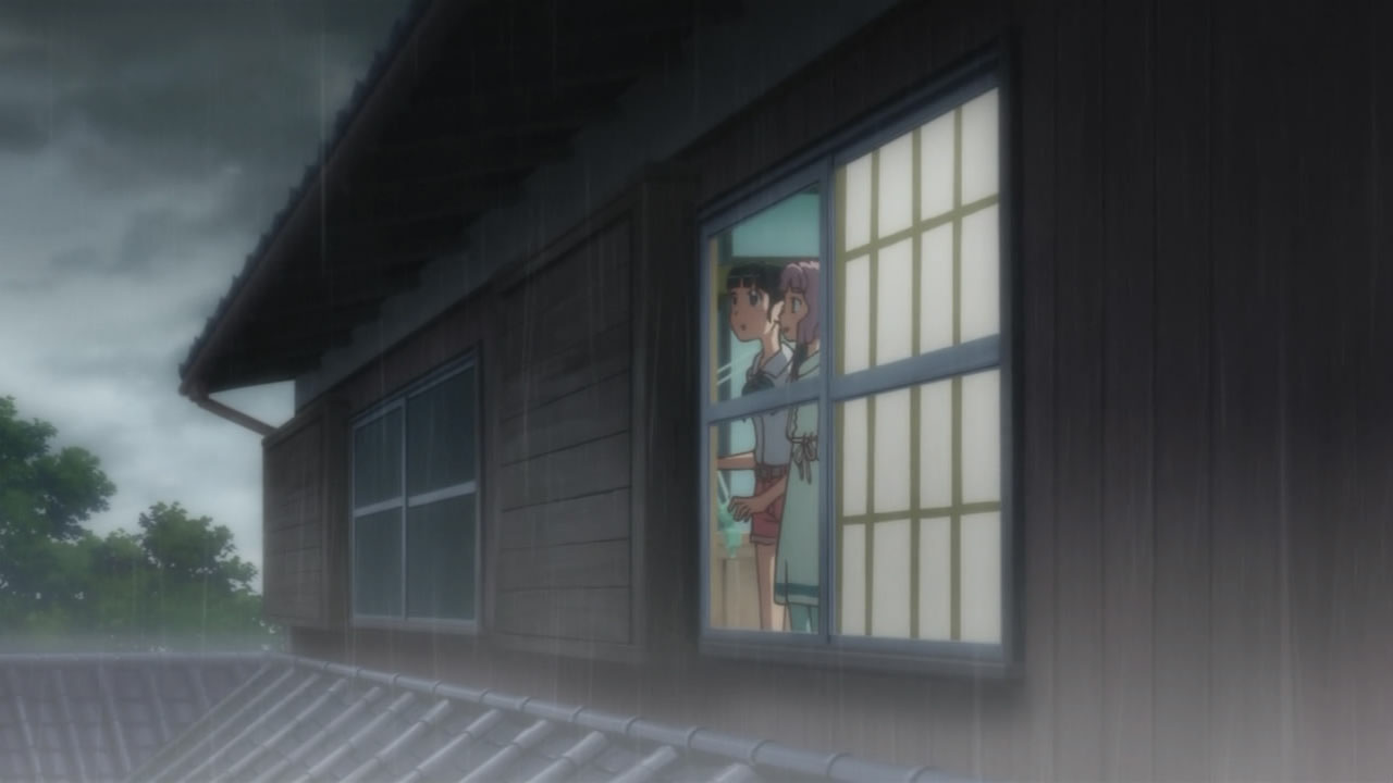 Saki is giving me also not-so-commendable feelings for a 14-year old. I wouldn’t worry either about her not making any new friends when she moves away. Well, male friends anyway… The girls probably all gonna hate her.But the storytelling nagged me a bit too. If the performance is so important to them (as Saki states), then why all the last minute preparations?On a personal note: the scenes in the inn reminded me immediately of Hanasaku Iroha, and I recognised those rain-dolls from Usagi Drop. So maybe I’m watching too much anime these days.
