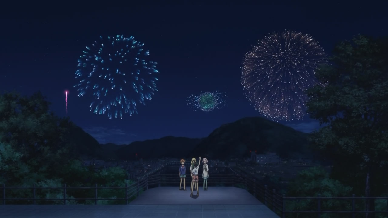 Those criticisms aside, the feelings this episode evoked were really, really nice. I enjoy this series most when it acts like a friendship anime (with some occasional yuri baiting, just to keep us guessing), so when Saki and Natsumi started talking about the water balloon fights the four of them used to have when they were kids, I found it to be very heartwarming. Yuka is a frivilous and silly girl, and definitely the one of the four who has the most growing up to do, but she’s still a good person and a good friend. The same is true for Natsumi, even though she always seems to be quarreling with her friends, and of course the other two as well. Hearing all of them talk about their past together, and all wanting to mess with the laws of nature to create a memory together was sweet. We all should be lucky to have such good friends (especially the reliable ones like Saki and Rin, heh). Warm fuzzies all around!