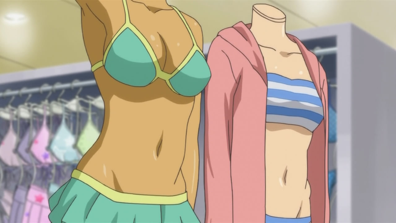 Yuka drives the heart of the friendships; she provides the color. In some ways,I feel I can empathize with Yuka at some point(s) in my life.Bottom line is that without Yuka’s unique chemistry, there’s a good chance that thegirls would not have competed in and won the singing contest.So, looks like Anime swimsuits next week (Moretsu Pirates, too) – do these guyscoordinate these things, or what!