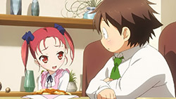 Some in-house produce placement they have there.Also last episode, there was a huge advertising board outside the cafe Haru and Aqua Current were in, advertising another Ascii Media Works title “Mahouka Koukou no Rettousei” (or The Irregular at Magic High School).