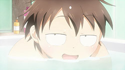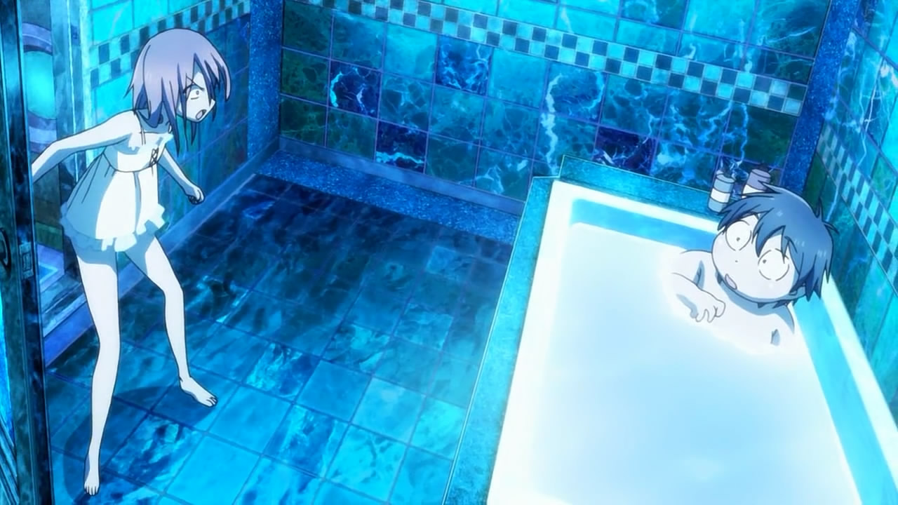 A loli bathing fanservice scene? In an anime that’s entirely wish fulfilment? Who would’a thunk!