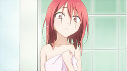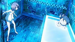 that was a bizarre sort of introduction….into his home no less, had to have stalked him out somehow…she’s definiteluy dangerous but it seems she’s more like one of those sneaky yellow team guys that Kuroyukihime mentioned. that’s a lot of work to find Haru and then try to what….get in his good graces to feel him out? i think it would have been more of an impact if she’d been more shrewd first and played a more drawn out intro sensibly before flipping the switch. i was only watching her cuteness the whole time thinking….is she nuts!? especially inviting herself to the tub lol. maybe a little pressed for time in the episode count but the fight was stellar.
