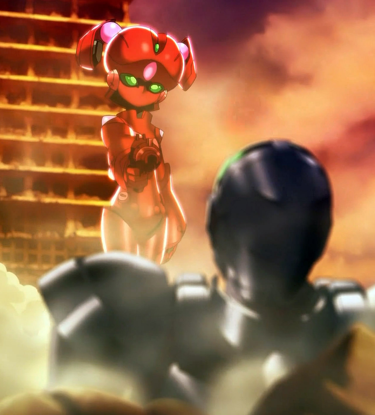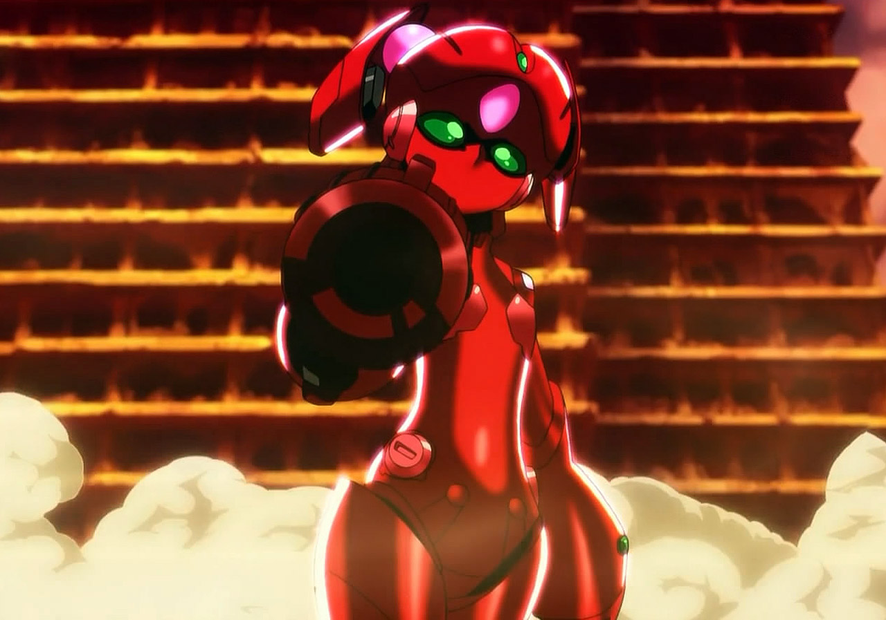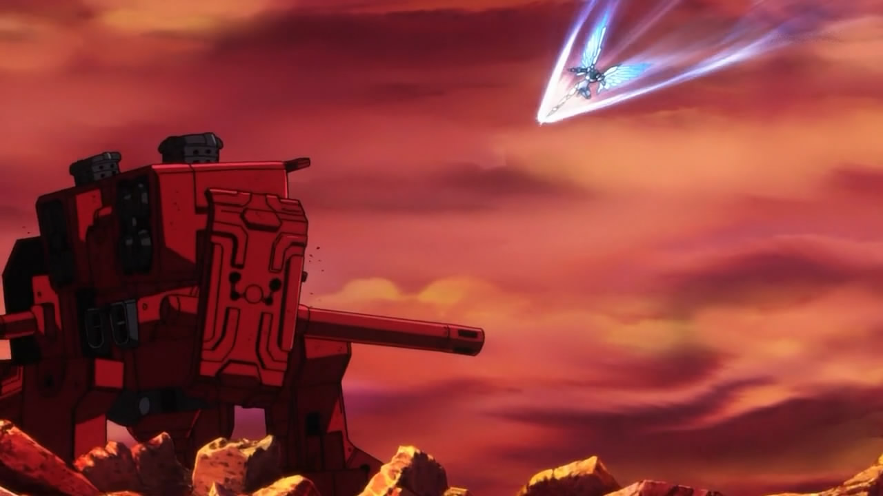 Primarily glad that a (random) character actually points out in the episode about Haru relying so heavily on his flying ability and the fact that doing so means that people are given plenty of opportunities to adapt to and/or counter it, and Scarlet Rain shows a perfect example of that with her anti-aircraft missiles that she’s never been able to use (given Haru’s the only one so far able to fly), showing she was well-prepared for such a thing well before Haru even got the ability.On the other side, it’s also nice to see Haru also realizing this himself and working with being shot at in order to increase his speed and agility to be able to dodge such inevitable attacks and, in practice, he does quite well doing so against Scarlet Rain. The only problem was the unpredictable result of her being able to simply cast aside the fortress like that and dodge his own attack.