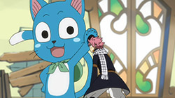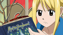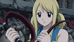 Leaving that and going back to the episode itself, it seems that there has been some gossiping going on about this quest. Michelle said that there might be a traitor in FAIRY TAIL, Im not sure if thats a serious statement or not, but the only person I can imagine being a traitor for now is Michelle herself, but I hope Im wrong. I like her very much, especially her interactions with Lucy. Id be very sad to see her betray Lucy. But luckily, Lucy has three more partners for this quest: Natsu, Happy, and Romeo. It looks like Romeos battle is coming up, and based on the opening sequence, I assume hell fight alongside Natsu who has now returned to his original size thanks to some kind archaeologists.