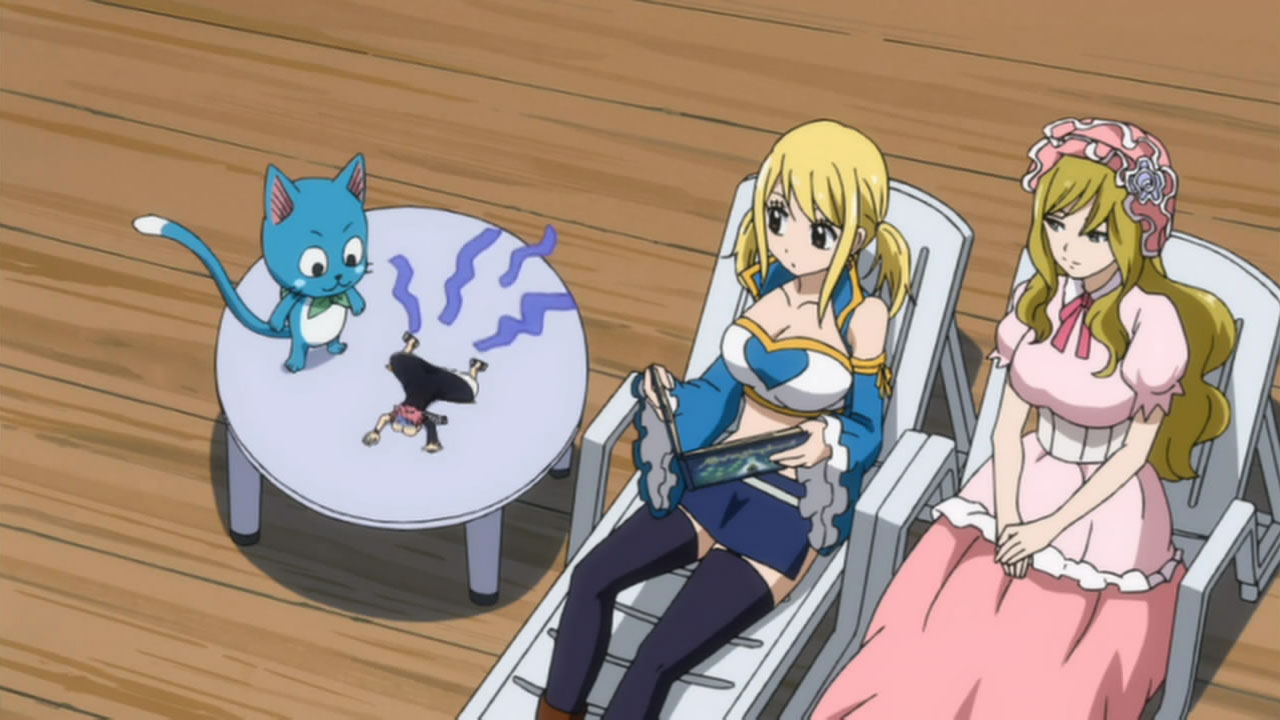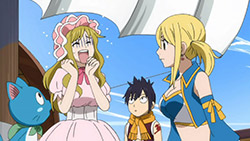 It’s great that there are so many screenshots of Gray and Juvia. And I’m happy that Lyon is there with them; it should make things more interesting with the love triangle.That picnic was just so random. I actually don’t want Lily to overcome his fear of lightning, because that’s part of his cute side. I hope they will explain why the archeologists know Lucy’s mom. And too bad Natsu’s back to his original size, I won’t have mind if he stayed small for another episode.