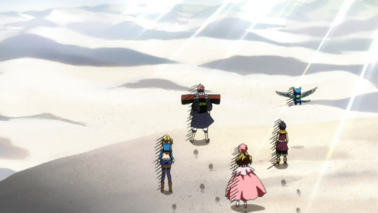 Now that weve seen some teams arrive at their destinations, it seems that next weeks episode will focus on finding the key parts in these weird places. It looks like Grays team will fight while Natsus team will walk through a labyrinth. There is nothing in the preview about the other teams. I guess theyre still training, or maybe, still sulking because of a ruined picnic
