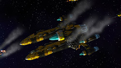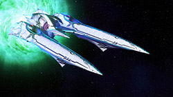 Interestin use of a giant hologram on the ship as well as sound effects to use against ones enemy.I do have another logical thought for such holograms. In a large number of older sci-fi anime you would typically have the villain order his fleet to open fire with a sweeping hand gester. Sometimes without even a spoken word to fire. If he had a giant hologram of himself over his flagship, the entire fleet would be able to see him give the order to fire…and so would the enemy, who is usually being intimdated or played with at this point in the show