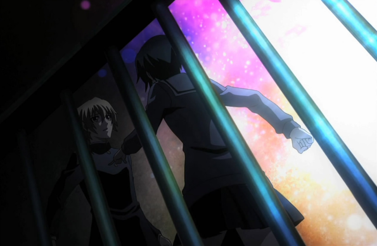 For the ED theme: note that the video fades to white, instead of black like the normal theme. I’ll spoil tag this but it’s only a guess:Does Yuuko finally see the light now that the dark (Shadow Yuuko) is now a part of her? I’m really impressed with this show: from episode 7 it’s been nothing but improvements. I’m tempted to raise my score for this show to a 7 despite the first six episodes and Momoe being absolutely annoying and her tendencies to ruin really nice scenes.