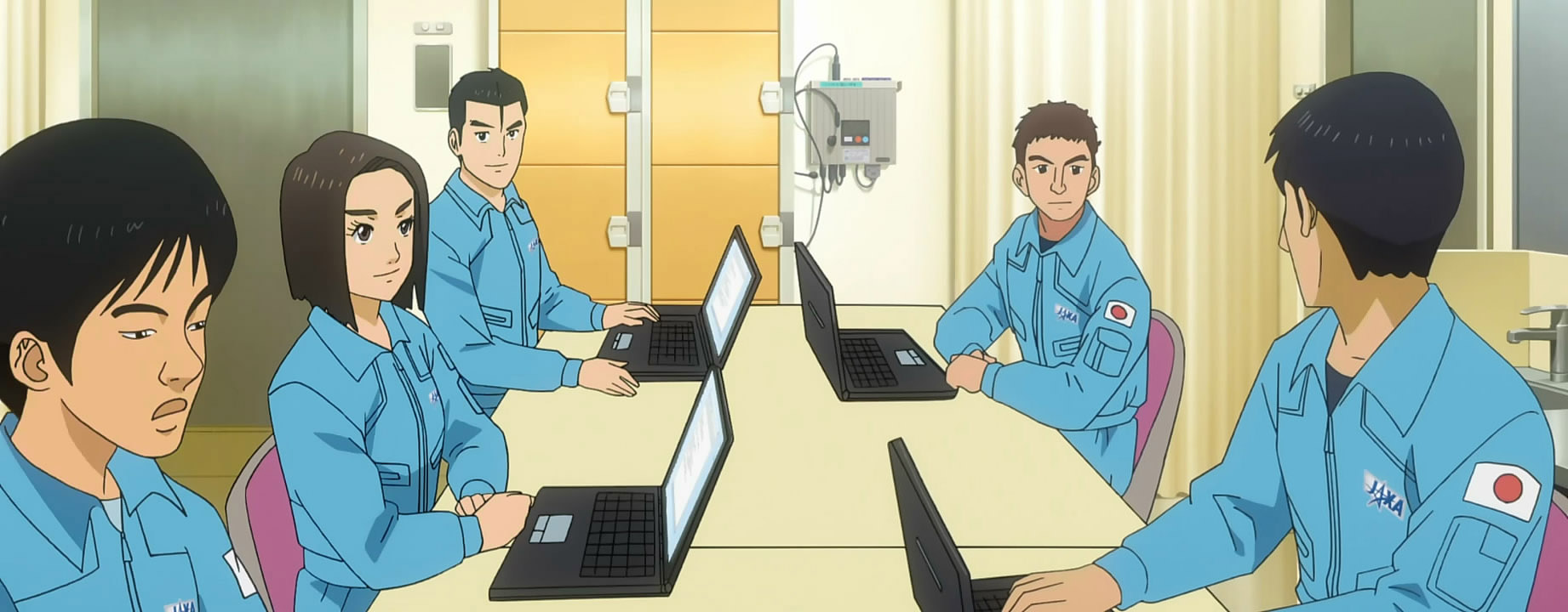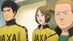 For Mutta this was rather an up and down episode. With his fundamentally flawed air abacus, he manages to perform terribly on the first of the tests. Only four questions right? Come on Mutta, you’re better than this! But while this may have reflected badly on him (and earned the ridicule of other members of his team), he did have his chance to shine and score points with Director Nasuda, arguably the most important person to impress of all the examiners. Noguchi Soichi’s musing on ants and how looking at things from a different perspective can provide new solutions is a very strong point in favour of space travel. What’s to say that space travel won’t eventually benefit humans on earth through new discoveries (particularly in medicine as Serika points out in her letter)? Unfortunately, there are people out there who will never allow themselves to be swayed by ‘mere’ words and reason; only being shown the true benefits can finally convince them to admit they were wrong. Shiokawa seems like exactly that kind of person – a well written letter would probably never be able to show her the light – only results will get her to acknowledge the benefits.