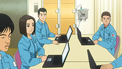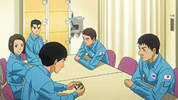 JAXA really seems to enjoy playing mind games with their astronaut candidates. In reality, pretty much every test being thrown at the teams (even before the dreaded third round of exams) has been designed to test mental strength and endurance as much as anything else. Even the choice of words used by each of the examiners involved in the testing has a hidden weight. For one, referring to what everyone is bound to realise is a stress level monitor as a ‘good luck charm’ puts excessive focus on why they’re being monitored. Nitta, for one, takes this to an extreme with his assumptions that it means they’re keeping watch to see who remains calm through everything and that displaying emotions could have a negative effect on the outcome. This assumption could end up being to his detriment – I’ve never really seen him as ‘calm’ from the facade he shows us. Kenji is calm; Nitta comes across as cold.