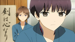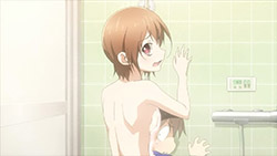 And now we can discuss the lovely shower scene. There was one earlier on featuring Kuroyukihime, and later on, an unforgettable Yuniko. Obviously we can’t neglect Chiyuri’s. It never seizes to amaze me how Haruyuki always finds himself in the most uncomfortable situations. Not to mention that they would never happen in real life. I mean… really?! My first instincts to hide someone in the shower are not to push him against a wall with my chest. I guess if the door is semi-opaque, you can likely see shadows… but I still stand by what I said. These situations give boys false hope that they will actually be thrown into a shower with their best friends. I guess for the sake of television, everything is possible though so I will not say it is impossible.
