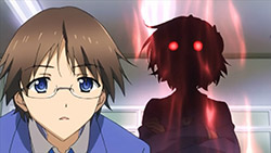 we don’t know that your first idea hasn’t happened without our knowing it, but the second one you could explain by his seemingly top grade hacker ability, he hacked Haru’s vision! I’m sure a school cam could be altered accordingly. I spose they could hack their way out of it too lol. hacking dues ex virus. it all seems plausible to me but i’m always last to figure out hyouka too, 😛