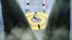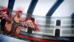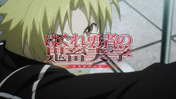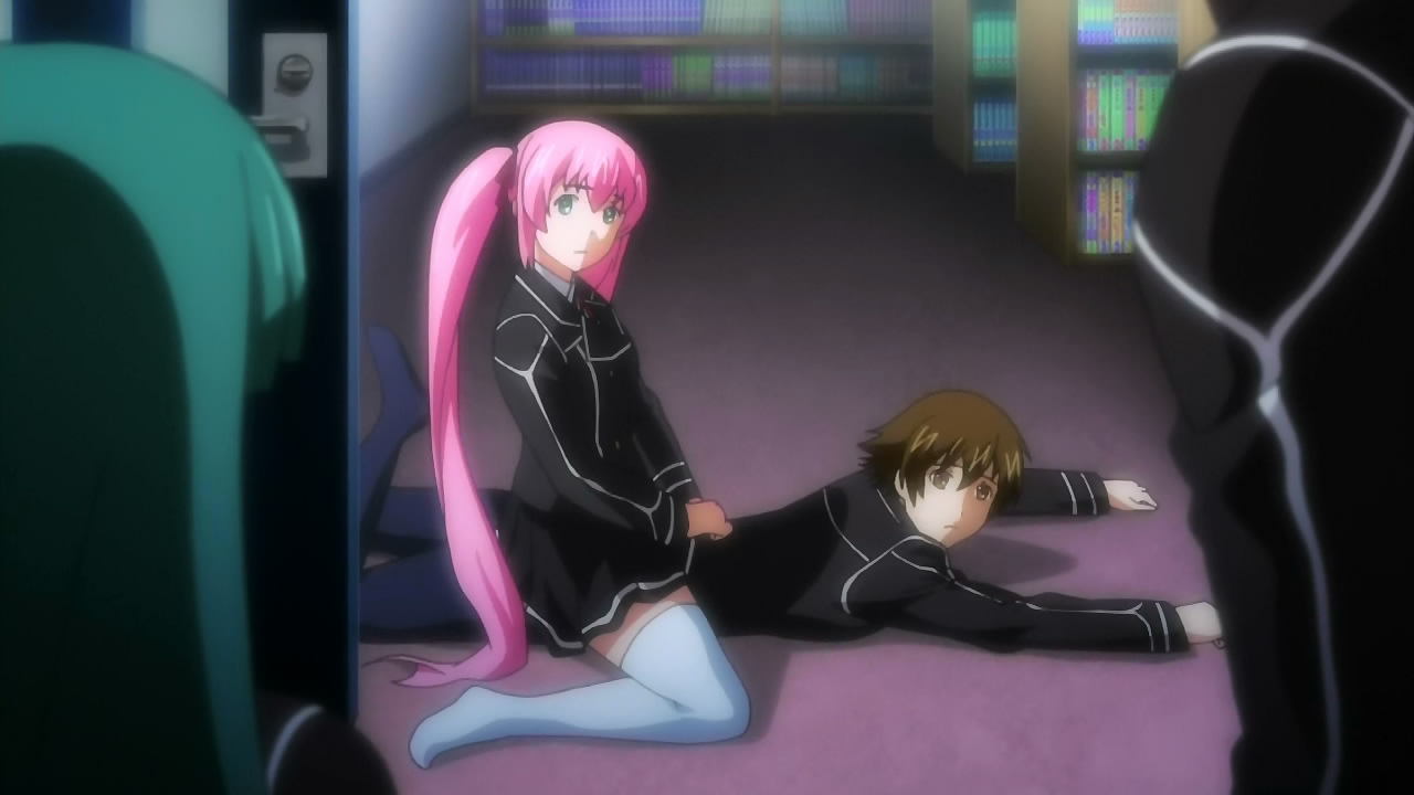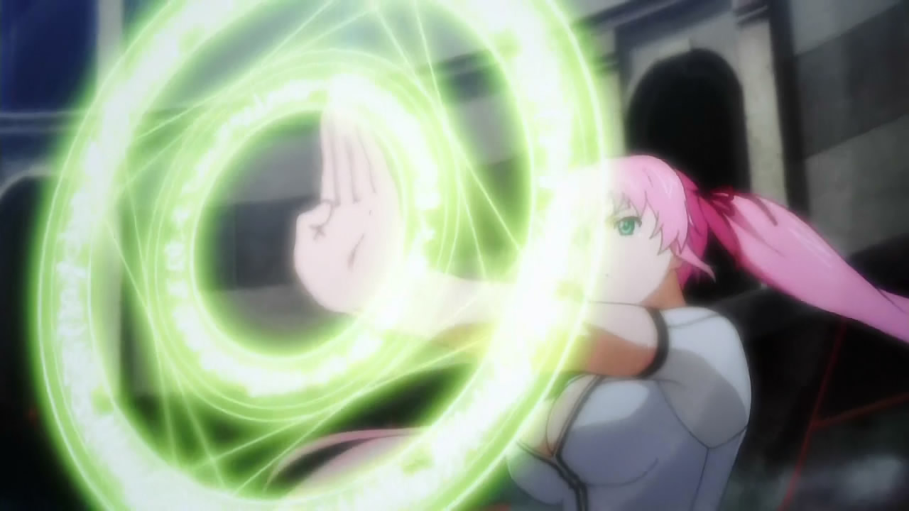 Moving on, I reckon if the red-haired hooligan’ll be a kind of Scarecrow (cue Jormungand reference), in that he’ll be a constant source of laughter throughout the series. I mean, every single cameo he makes ends up with him getting owned in someway, and at this point, it seems like it’s definitely intentional. Other things to ponder: Who’s the one sabotaging the session and for what reasons? Why is it that people can actually be turned to stone? I remember the first episode saying that students don’t actually die in sessions… but this seems to throw that explanation for a bit off a loop. I suppose though, in the end, we won’t actually see anyone die, because Akatsuki’s there wielding his spanking new sword of doom… but it’s something that’s bothering me a little bit.