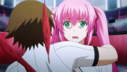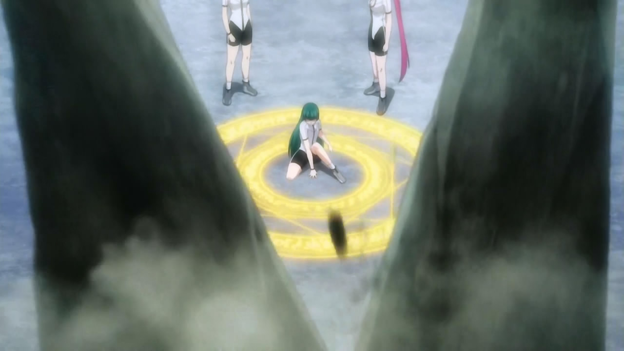 Ah, what’s this? We’re having some sparring practice? Awesome, let me just pick up my handy weapon summoning wristband and let’s kick some ass. Oh, what’s this? Join together in your own preferred groups? Sure, I know who I’ll be with… but who will Akatsuki end up with? Of course he’ll end up with the red haired hooligan! Oh and down he goes! Wait, what’s going on in the other arena!? Someone sabotaged the simulation and maxed out the statistics of the monster involved, and it’s turning everyone into stone!? Miu, Class Rep, and Izumi are in trouble!? Quick, call the maverick! What, he’s already there? Wait, of course he’s already there. He’s gotta save them magical girls. Will he do it!? Will he succeed with the epic sword that’s twice his size!? It’s just not easy being a hero! To be continued next week…