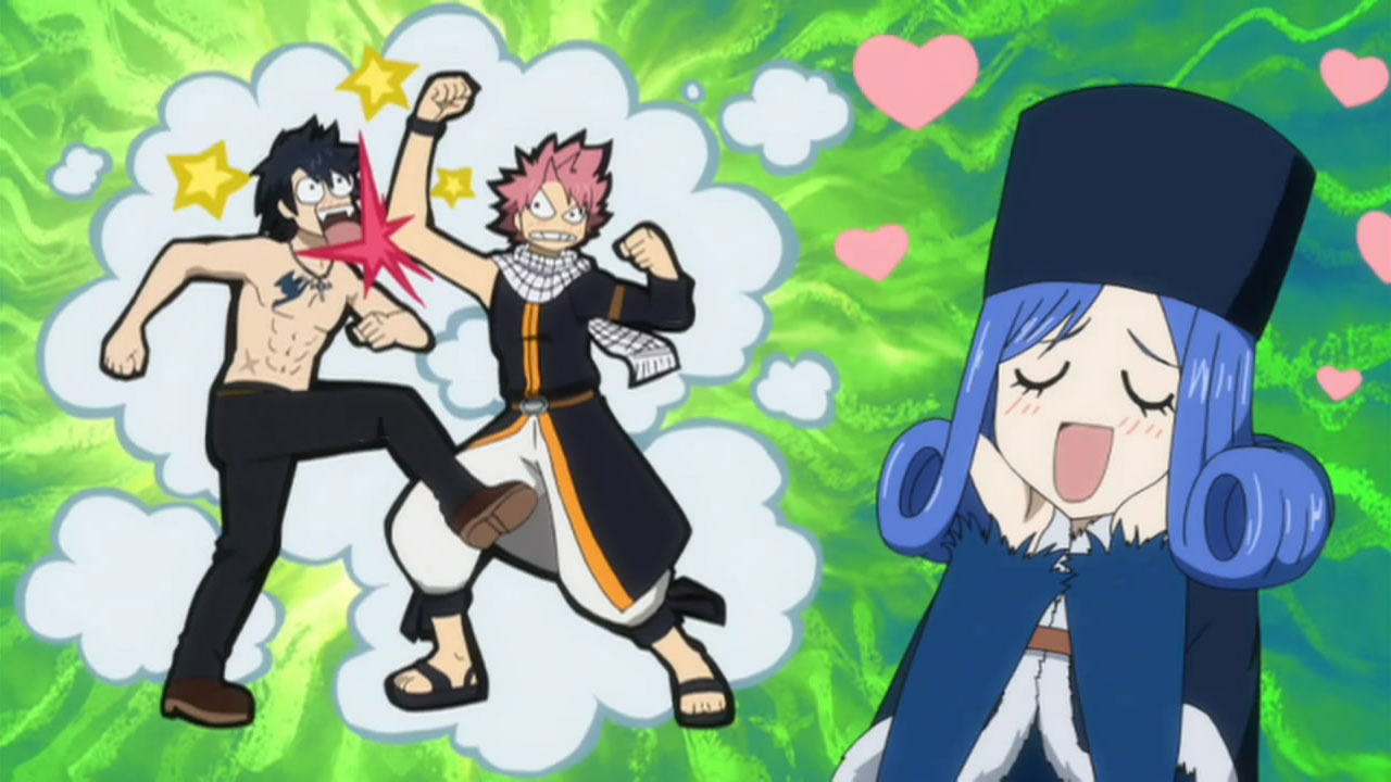 I love Juvia ever since the Fantasia arc; during her battle with Cana against Freed, I saw that she truly cared for Fairy Tail. I was hoping for a team-up with Gajeel (due to the Phantom Lord connection), but now during her journey with Gajeel against the Oracin Seis, I am afraid she might be complaining about not being with Gray. At first, her obsession was okay, not desired, but okay. Now, she have gotten too clingy. Gray have not returned her feelings as of yet, and so I am glad for Lyon to come in and sweep her off her feet. In essence, where is the strong and independent Juvia that I love?