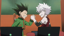 For an H x H fan or at least this one this was an episode that had almost everything. As much as Ive enjoyed the Kurapika mini-arc theres been a certain something missing, a bright energy that pairs with the darkness at the heart of the show and makes it resonate in your sternum like the beat of a taiko drum. Kurapika brings plenty of darkness and rage, but as much as I think hes a better person when hes with a group especially friends than when hes alone wallowing in his rage, the show itself is better when hes paired up with the others.