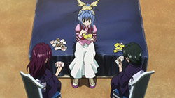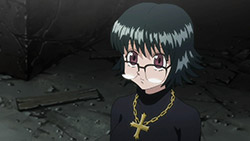 So in fact, what we have is Kurapika and Gons destinies converging in York Shin, with each of them having something very concrete to gain from the auction. And as Gon and Killua infuse the ep with their feckless charm, things are heating up big-time in Kurapikas world. He and the three other candidates (Basho, Baise and Melody) have each found a rare item from their list (though none of them the eyes of a Kurta) and been hired as bodyguards. Dalzollene is the go-between, and their new boss is not what anyone expects. Neon Nostrade (Ueda Kana) is a seemingly harmless genki teenage girl, but her family name is a clue to her true nature shes an incredibly powerful diviner, and her father Light (Itou Eiji) has leveraged her amazing fortunetelling into great power in the underworld. We dont see much of the two of them interacting, but the sense is that Neon is a handful and not always keen to do what Daddy tells her to do.