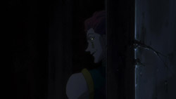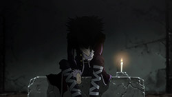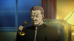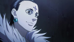 Ill take the lazy way out and direct you here for the full list of Troupers and their seiyuu. Suffice to say its an amazing bunch, including the likes of Miyano Mamaru as leader Chrollo, Paku Romi as Pakunoda (heh) and Yamaguchi Kappei as Feitan and thats just for starters. Considering the buildup this bunch has had their introduction could easily have been an anti-climax, but it was handled beautifully by Madhouse complete with stirring orchestral soundtrack. Each member was introduced with style, each making an impression building up to Chrollo and the one member of the Troupe we know full well Hisoka, fashionably late as usual. Adding to the fascinating mix of course is the fact that Hisoka clearly considers the Troupe just another tool for his amusement, and doesnt take his membership seriously enough to even have a real spider tattoo. And the rest of the gang seem to hold him in no higher esteem than he holds them. As always, Hisokas ultimate goals are a mystery but as for Chrollo, he declares his intention to steal everything thats up for auction, and to kill everyone who gets in the way.