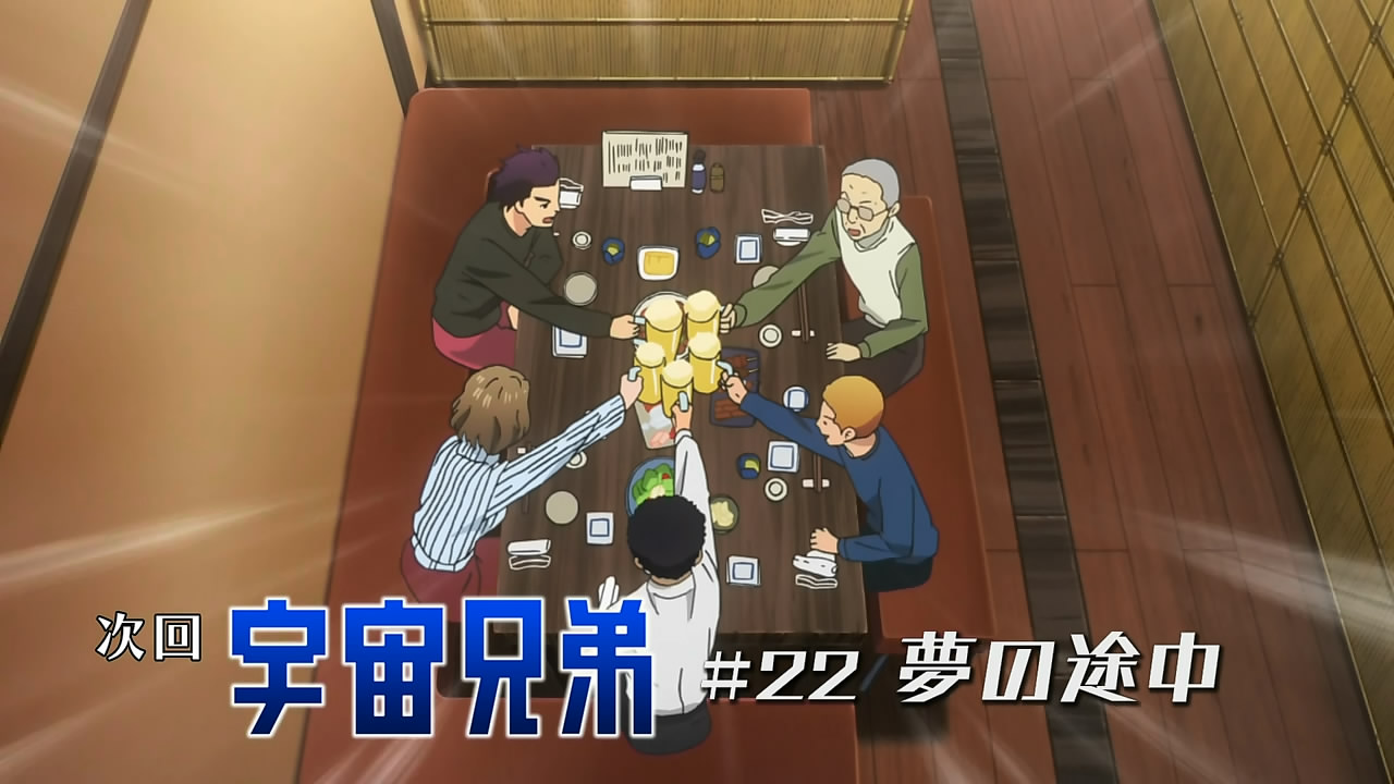 As usual, this episode has a lot of focus on dreams. Upon exiting the building (it seems those who guessed that they were still on the JAXA premises were correct!) and seeing the sun for the first time in weeks, Mutta stops to stare at the moon – essentially the embodiment of his dreams. While the others continue off into the distance, obviously relieved to finally be free, Mutta’s first thought is still a fixation on outer space.