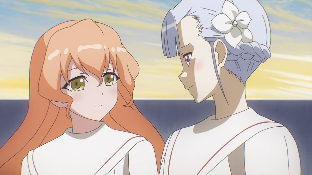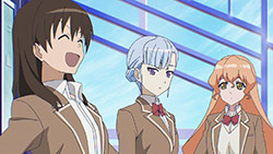 As far as indecision goes, that was all Madoka’s territory. While Lan and Muginami know what they want to do – Lan to help her onii-sama, and Muginami to do something for her home planet of U-Go – Madoka appears to have no idea…or is just putting off the decision. First of all, I was so sad at the news that Lan and Muginami would be leaving that I couldn’t properly indulge in yuri shipping, nor make comments about Lan’s “We’re one now” comment. Noes, don’t go! Fortunately, Madoka hinted at the end that there might be another path. If not employment and not higher education, then what does she, the girl who put the rings around the planet, have in mind for the future? I don’t know for sure, but I’d warrant that it doesn’t involve staying on Earth, at least not full-time.