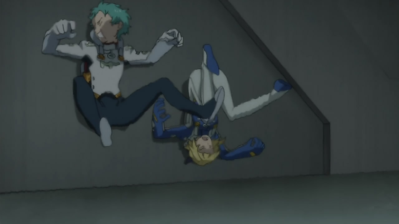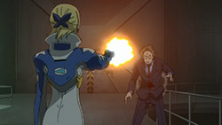 There was something very chilling in watching Mama and Rajkumar up there, in the moments before the end. I had a strong feeling of foreboding as soon as I saw Truth go into Firecracker mode, and quickly, almost too quickly, Harlequin was apparently destroyed. The possibility exists, of course, that another reality could be created where they were never killed, or perhaps were never pilots at all but what really struck me was watching Ivicas reaction. The Allies assumed it was GenBleu that had destroyed the satellites, and sent IFOs to attack their HQ and GenBleu assumed it was the Allies that destroyed The Poseidon. But Ivicas furious pledge to avenge them struck me as especially hollow, even if it was sincere. Ivica is the ultimate hypocrite, really he professes his desire to keep the children safe at all costs, yet hes a willing participant in a pseudo-military organization that places their life in danger. He may feel hes trying to do the best he can for them, to be an advocate from within but ultimately, hes an accessory to their murder. I cant honestly say Ill mourn Generation Bleu if they really are doomed, as it appears.