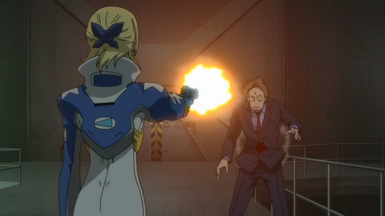 Whoa, this ep certainly moved fast. I figured Naru was using Truth instead of the other way around, and him being a haywire Secret makes sense. Too bad he’s probably not gone for good, because he still pisses me off (especially so now that it’s been revealed that mister ‘you should all see the truth’ didn’t even know the truth about his own freaking existence). At least Cristophe went out like a boss…there’s something admirable about him going down with the ship. Team Harlequin sure was killed off fast though, unless that ship somehow made it out of that explosion. As for Elena, I wonder what she really meant when talking about ‘her’ world…did she come from the future, like Eureka? Or from ‘our’ world, before the Scub Coral started messing about with the timeline? Kinda confused now. And you gotta love her Eva references, haha. Well, it seems Generation Bleu is finished and Naru is helping the Scub Coral become one with humankind…um, didn’t the human race lose this war and flee the planet? That would be a dark ending. But then there’s Ao and his messing about with time could bring about a change, but, well, wouldn’t you get a butterfly effect then? Or hey, here’s a new theory, he became Eureka’s forefather! Haha…yeah right. And how is Renton going to play a part in all this? I do hope this won’t turn into a clusterfuck with a Deus ex Machine ending. Well, I hope the final eps air before that…