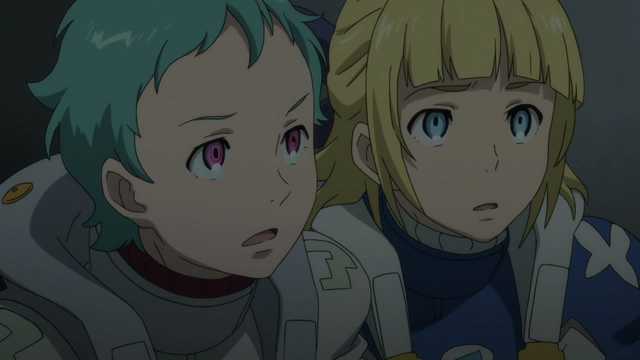 I really didn’t expect so much death in one go. As I thought, it seems that the storm we were building up to has arrived, and I’ll be very sorry if we are unable to get through the tempest of it. I too have misgivings about both Elena and Naru as sister-candidates. Elena has the wrong hair and skin colors to be related, but she seems to have the strongest connections with Eureka. On the other hand, Naru’s skin color doesn’t match her family’s, if you pay attention(though it mysteriously, along with her hair and eye color, somewhat match Renton’s), but her connections to Eureka are not as strong, at least so far. I doubt that a sister would be mentioned for no reason though. Perhaps Ao is weirdly his own sister; that is, perhaps whatever caused Eureka to return to Ao’s world messed with her unborn child enough that the gender was changed? Probably not though. I’m looking forward to next week, and to seeing where this really goes.
