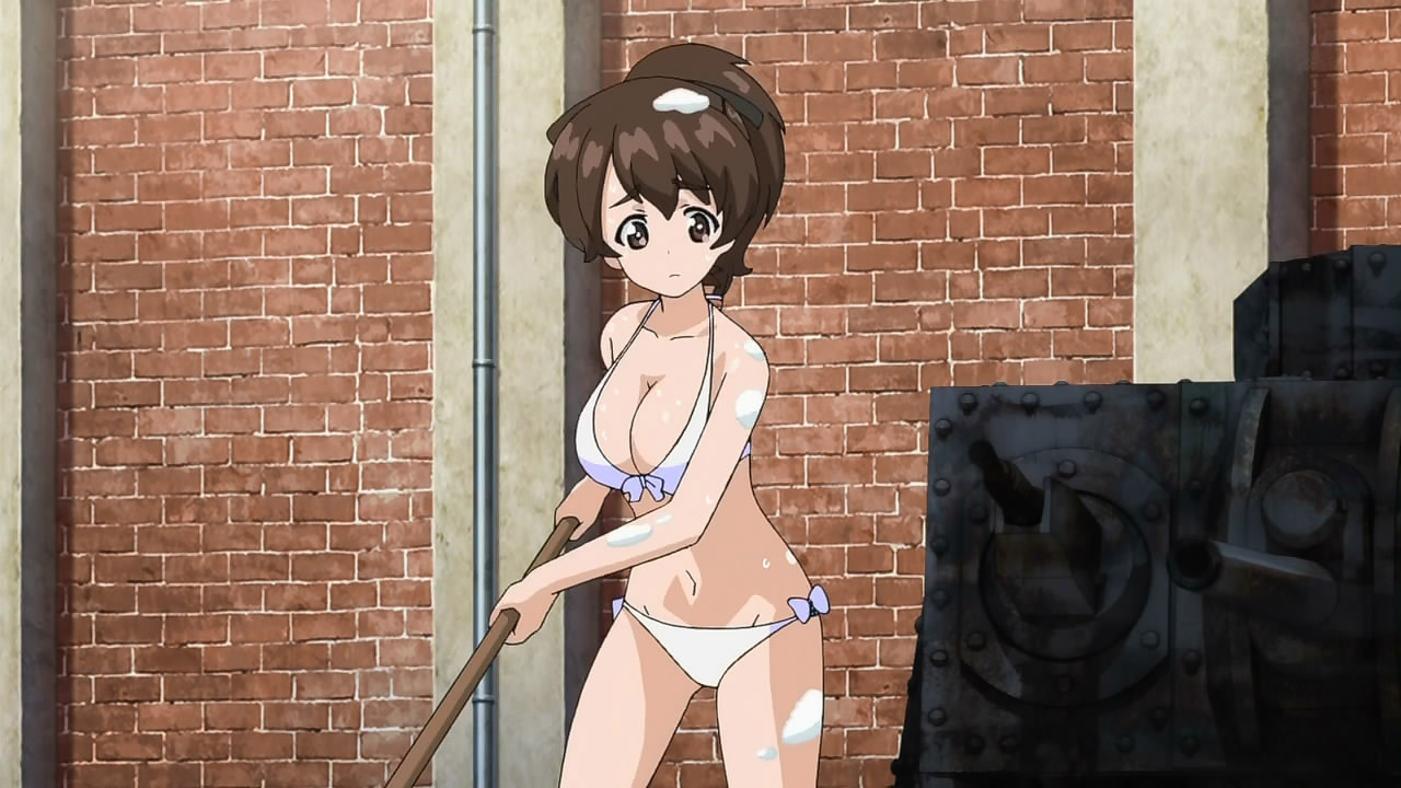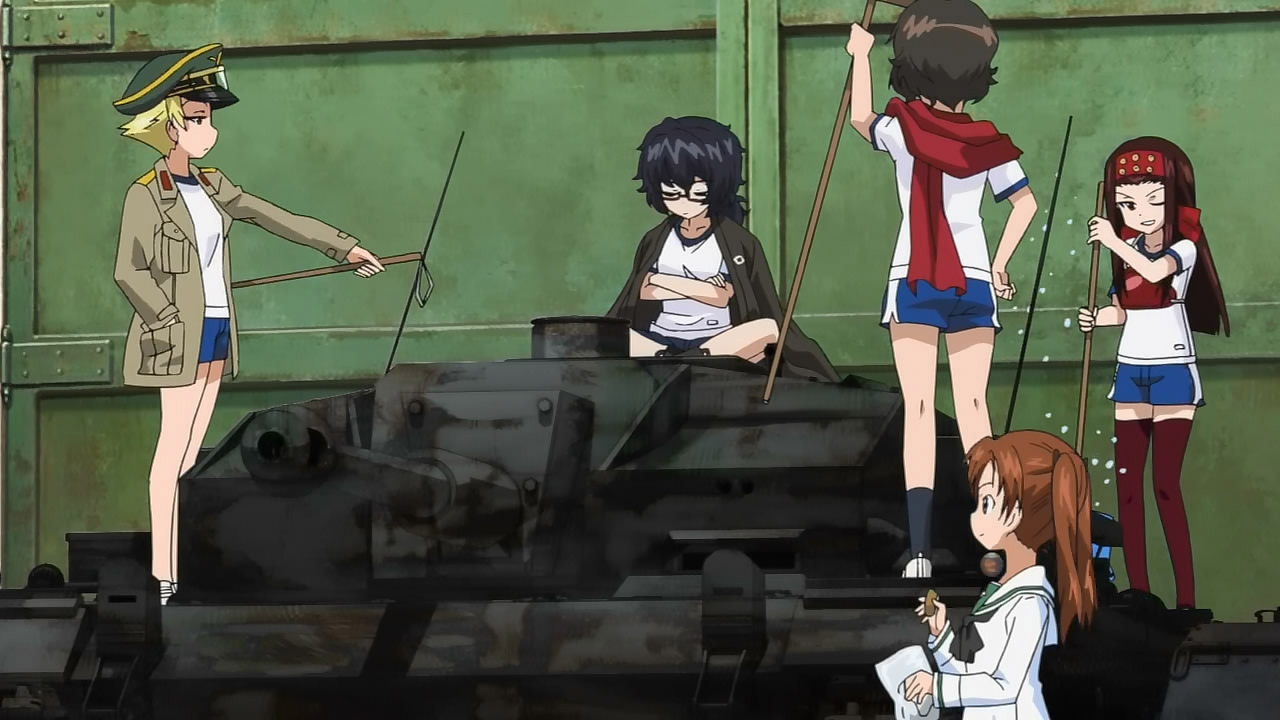 wow, erm, WoT,erm, woot!This is my series of the season! No it is my wet dream! If there was some lack of tanks in first ep., second one has really helped, with all the junk tanks being found in strange places. And some of the girls really dig tanks and their tactics wooohooo!Cleaning tanks made for some nice fanservice too… And the instructor is HAWT!It’s nice to see modern tanks are, well, modern, so Panzerfahren is basically more ritual martial art in the vein of kendo or archery than real war-related activity…For those dissatisfied with Commie’s sub, they made alternate sub without germanisms, but some are inherent in the show (Panzerkiel FTW!)
