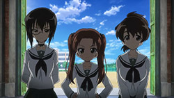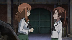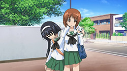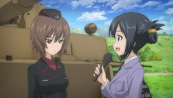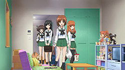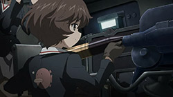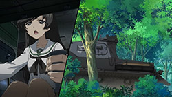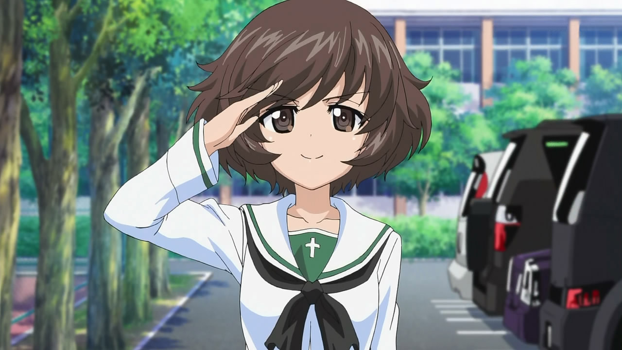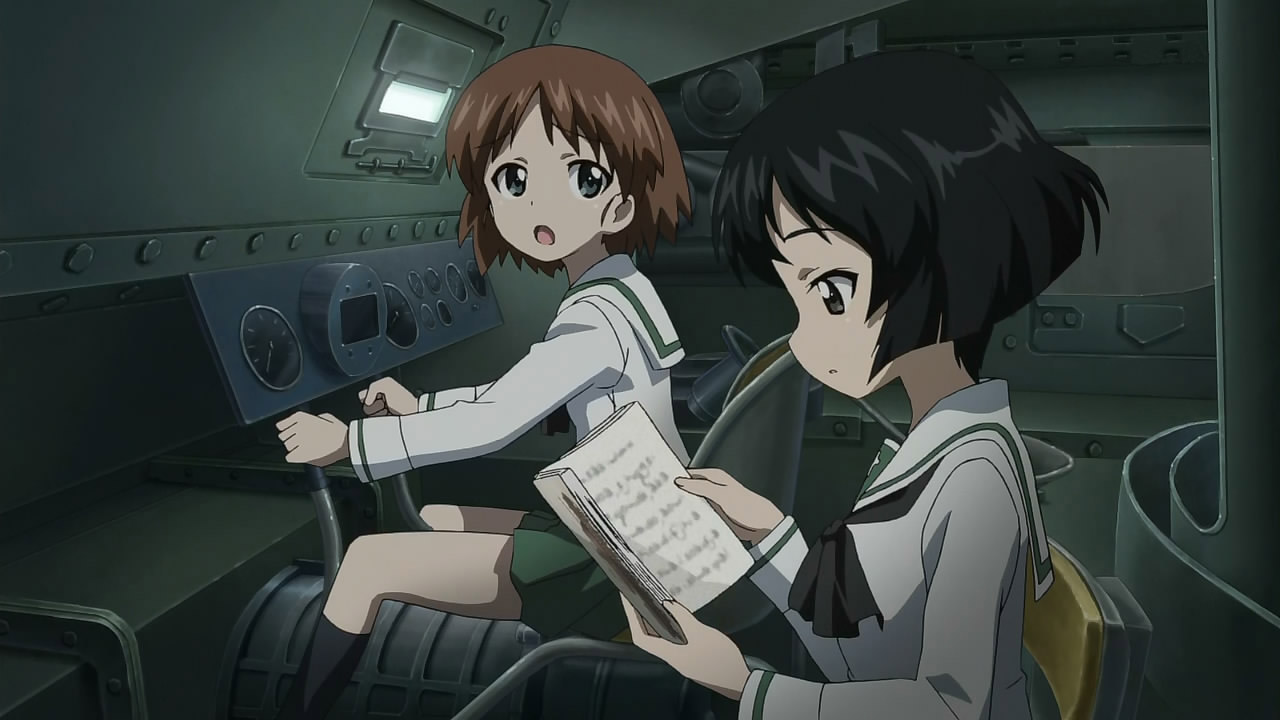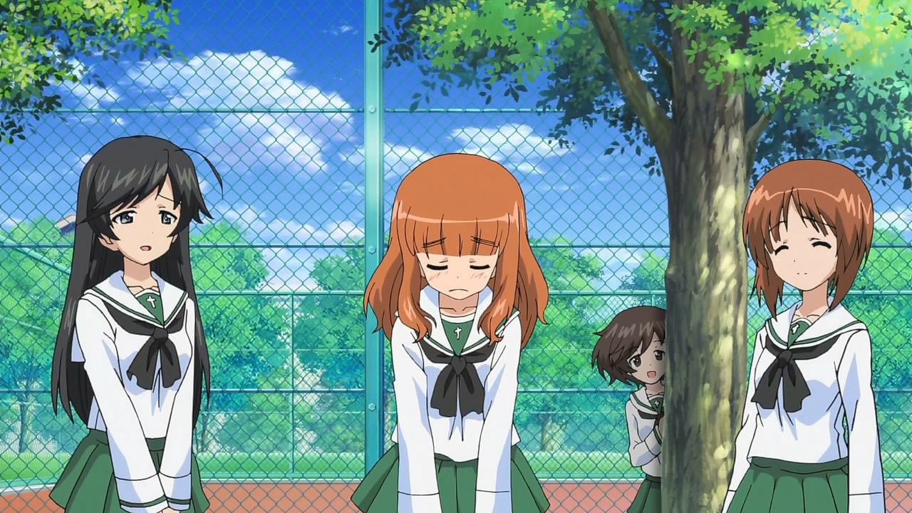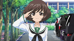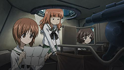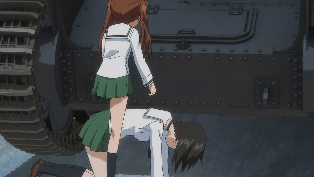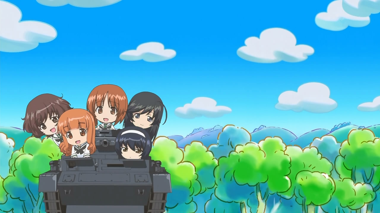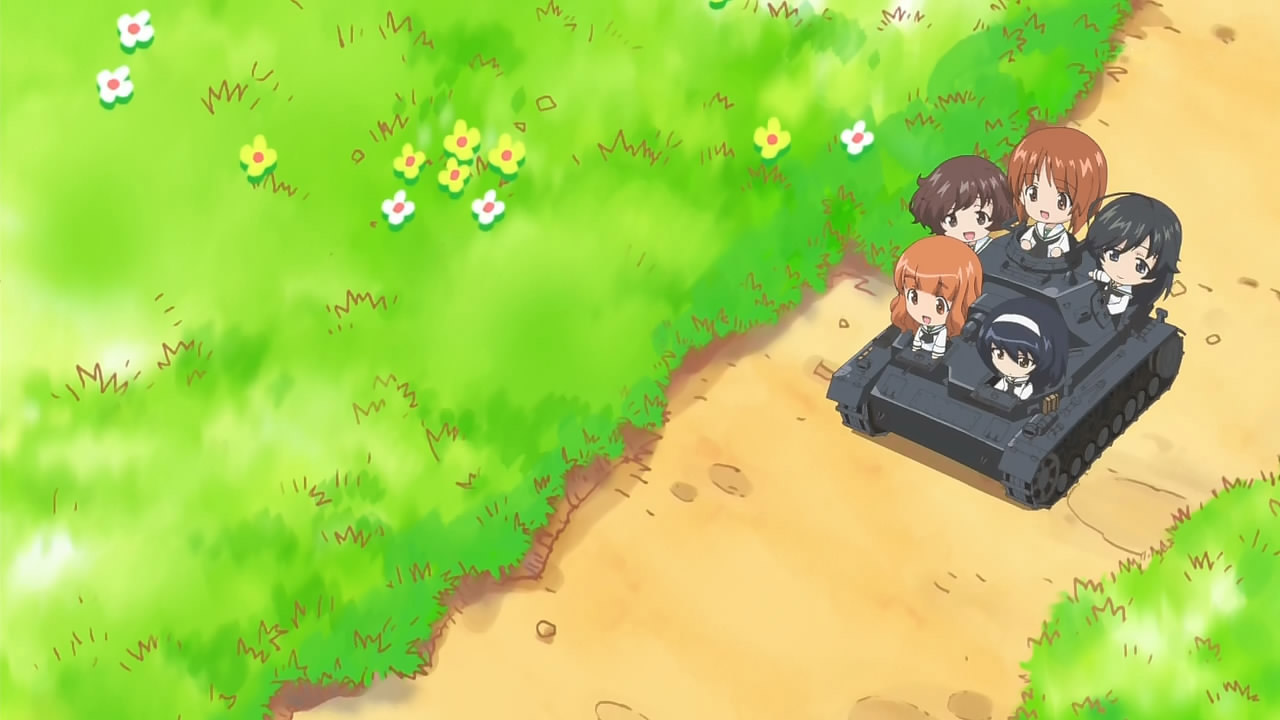 An enjoyable 2nd episode. – I got the feeling those tanks weren’t just abandoned in those places at random. Putting those tanks there on purpose looks like something the student council president would do.- Diverse cast is definitely a treat. It’s hard to pick just one favorite. Each team brings its own charm to the table. – Still wondering why that girl was the only one in a bikini, unless she was ordered to. The president must be really something that someone is willing to be her stepping stool. – http://images.randomc.net/Girls%20und%20Panzer/Girls%20und%20Panzer%20-%2002%20-%20Large%2014.jpg Subtle fourth wall breaking gag was cool.- Loved that scene where Saori and Yukari directed the subject away from Miho’s family background. Strong friendship right there. – At first I thought it was Hana that Miho saw on the way to school. That walk creeped me out. – The comparisons continue. If Saki had an ending with chibi characters and a world famous onee-san, Girls Und Panzer has those too. – Learned something new here. So commanders kick their driver’s shoulders when they want to turn. Felt sorry for Hana learned it the hard way. And speaking of commanders Saori with glasses was really cute.