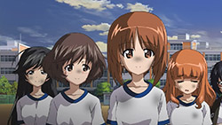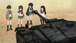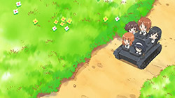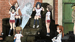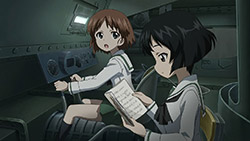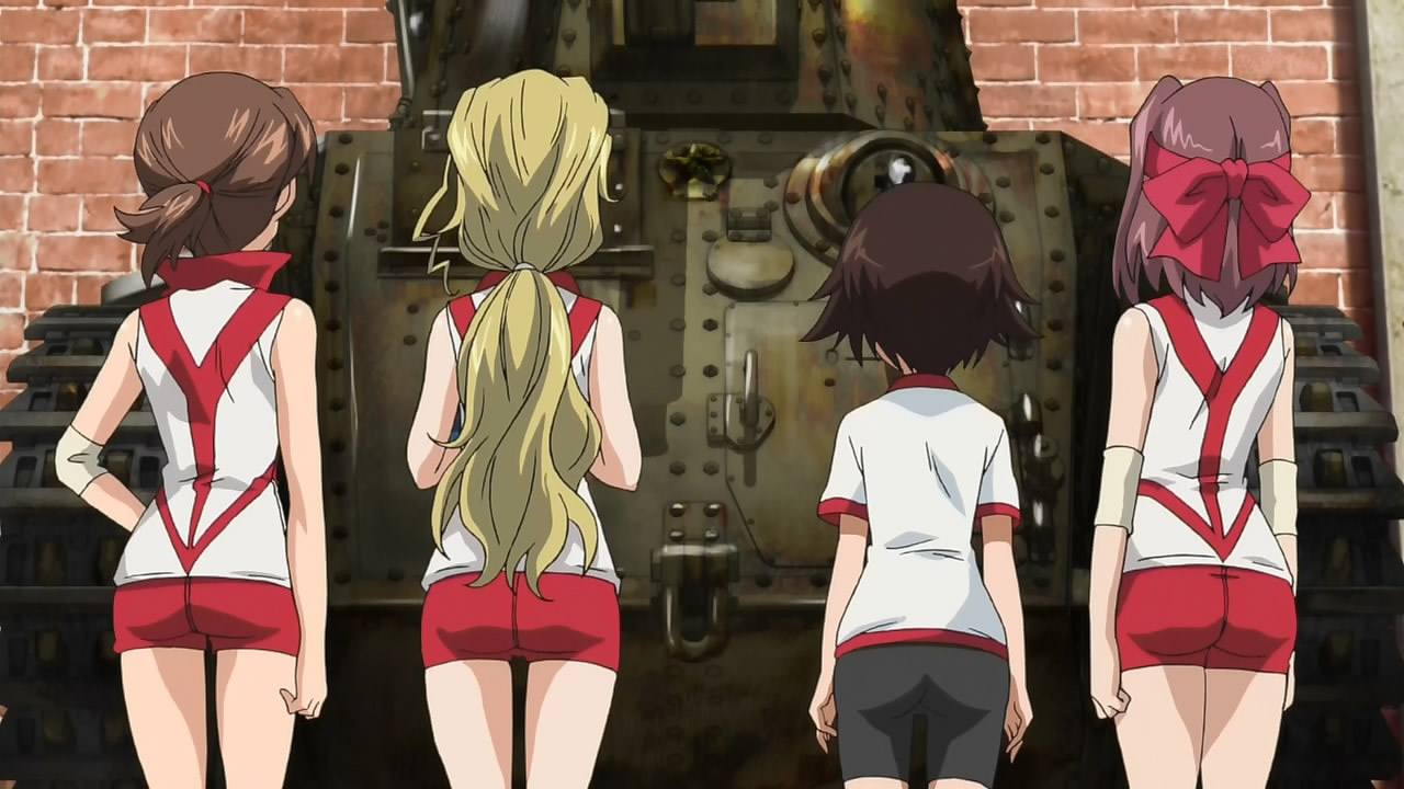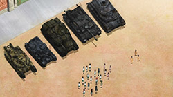 I’m guessing that it’s a grade level thing for the type of tanks the girls use, with the newer models going to the higher grades and the modern MBTs being used by the pros. Sort of like Upotte! with the weapon types grouped by grades. This is the type of show where you just turn off your critical thought processes and sit back and enjoy the cute girls and tank porn. Oh, and I really want to meet the automotive club that got them all running in tip top shape over night. 😉
