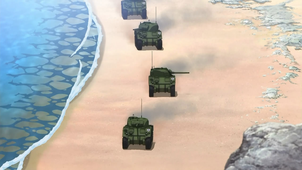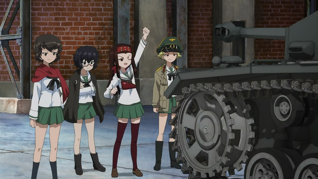 My favoirite line from the episode? “Appologize to the Finnish!” I Knew I was going to like Erwin. >) A few annoyances though. I can understand the difficulty in learning to drive an old tank so I didn’t face palm when the first years tried to google it, and the Historic club would know about such things so that’s fine, but the ease with which they all managed to drive them was a bit too much for my liking. It’s not like modern tanks where you just turn a wheel or something it’s much more challenging. Also having watched tank overhall severall times I can tell you that it would take days, even weeks to get those tanks just to look presentable.A few more facepalms from things that were said as well.”So the turret doesn’t move?”–The STUG doesn’t even have a turret.”It’s got screws everywhere.”–Those are rivets”But aren’t all tanks basically the same?”–She says after seeing all the CLEARLY different tanks standing in a neat row.I’m nit pickig of course but that’s how I felt at the time of those scenes.Feel sorry for the vollyball team in what is eaisily the most inadequate tank. Clearly the STUG III and the Panzer IV are the most threatening machines,The Lee coming in just behind the IV( losing points from its tall silhouette and sponson fitted main gun) Makes sense they would try to take out the IV first. Even the I-90 with its puny gun should be able get through the thin rear and side aromor.The STUG III easily has the most potent gun. A high velocity 75mm anti-tank gun will punch a hole clean through the other tanks on the team.Disliking that Prez more and more.looking forward to the next ep.
