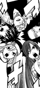 Yuka and Toby run into Bacchus but they don’t get the chance to fight him as Sting crashes down from a rooftop and takes him out. Bacchus turned out to be the leader of his guild, so Sabertooth earns 5 points and takes the lead. Yuka and Toby aren’t intimidated; they go for it and launch themselves against Sting, only to end up being taken down by Kagura, who earns Mermaid Heel 2 points. Minerva tells the other members of her guild to avoid Kagura and Jura.