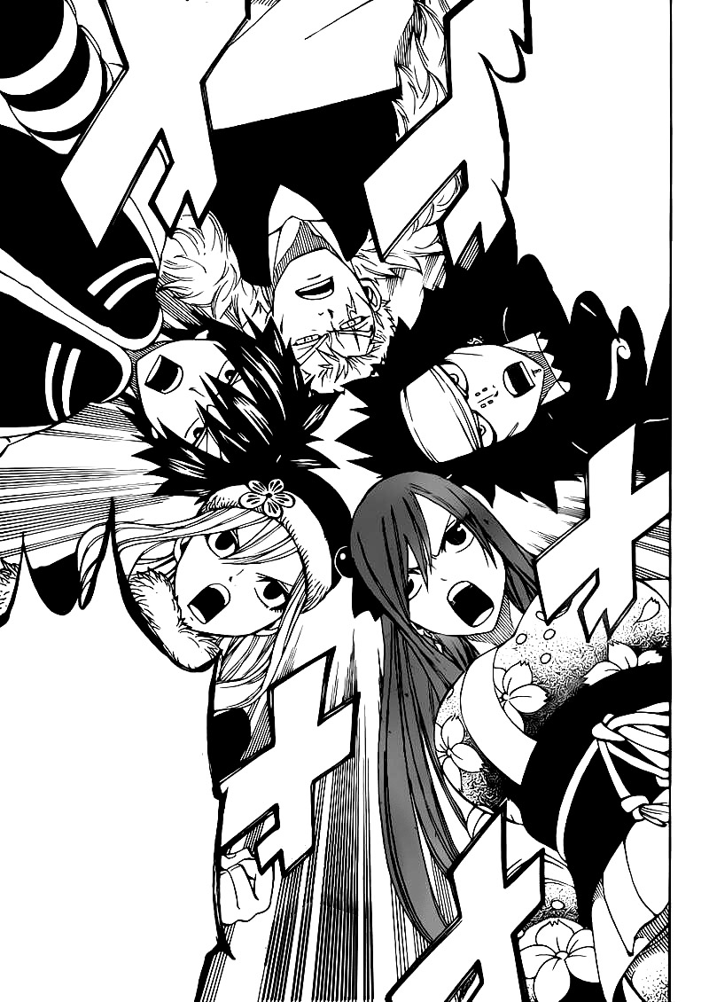 I absolutely adored Happy’s antics. I’m thankful Fairy Tail still takes time to use those single panel or single page gags. I remember the very reason I enjoyed Naruto way back when was because of the clever use of gags. Keep it up Mashima-sensei!Mavis is fantastic. It’s great to see the contrast between Mavis’ reactions and Makarov’s where Mavis shows the experience of being the very first guild master in both the times she decides to be carefree and those that she decides to be serious. Mavis is sticking around for sure though as she’s surely tied to the overall plot behind Fairy Tail keeping Lumen Histoire.Even though Frosch’s character has been really annoying throughout this arc, I still feel bad for how lonely he looks on the cover page :(…ALSO…I don’t think this is a mistranslation because I’ve checked the scanlation of different groups but it seems the story is continued in chapter 306. I guess incoming filler chapter?…again? Sigh…