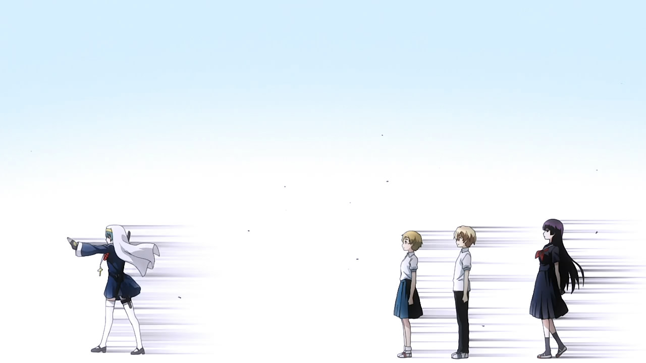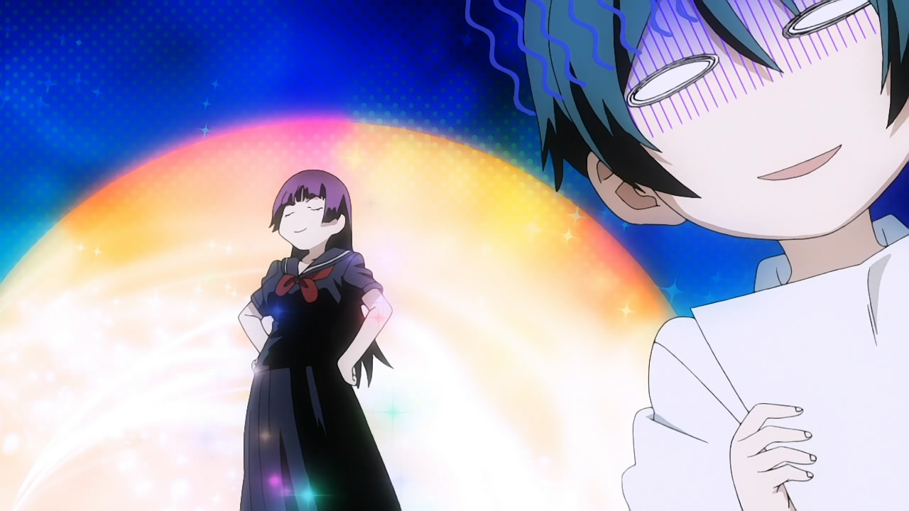 One of my favourite ghosts is back to haunt us with an extra episode of shenanigans and festivities! This unaired episode centred on Kirie which doesnt bother me at all because she is an amazing character. Even the opening sequence was dedicated to her and her exorcism. Unfortunately, she is not very good at exorcism, or studies, or athletics but she has a talent when it comes to posing! Kiries poses are some of the most unique ones Ive come across this year. I had to double check to make sure I wasnt watching a SHAFT show. SILVER LINK definitely has done a great job with Tasogare Otome x Amnesia. The visuals, the animation, the abstract and artistic backgrounds are just a few of the many things they should be praised for.