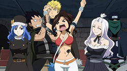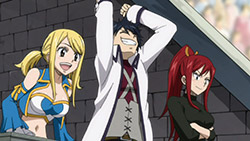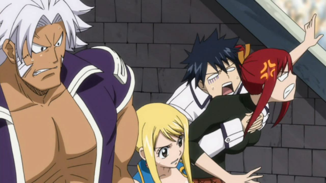 Edit – Manga spoilers:I believe after two or three more episodes we get to see Fairy Tail’s big comeback starting with Erza, Cana and Laxus before we get to see Natsu and Gray in action.