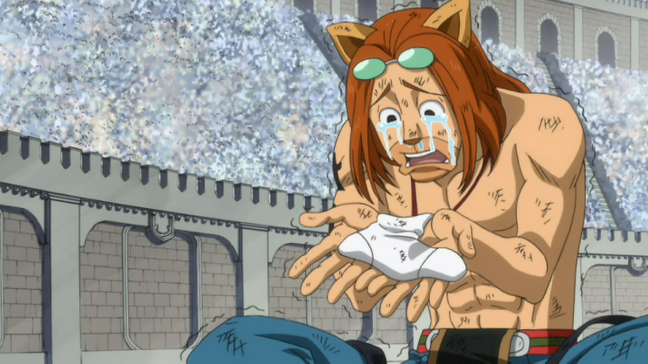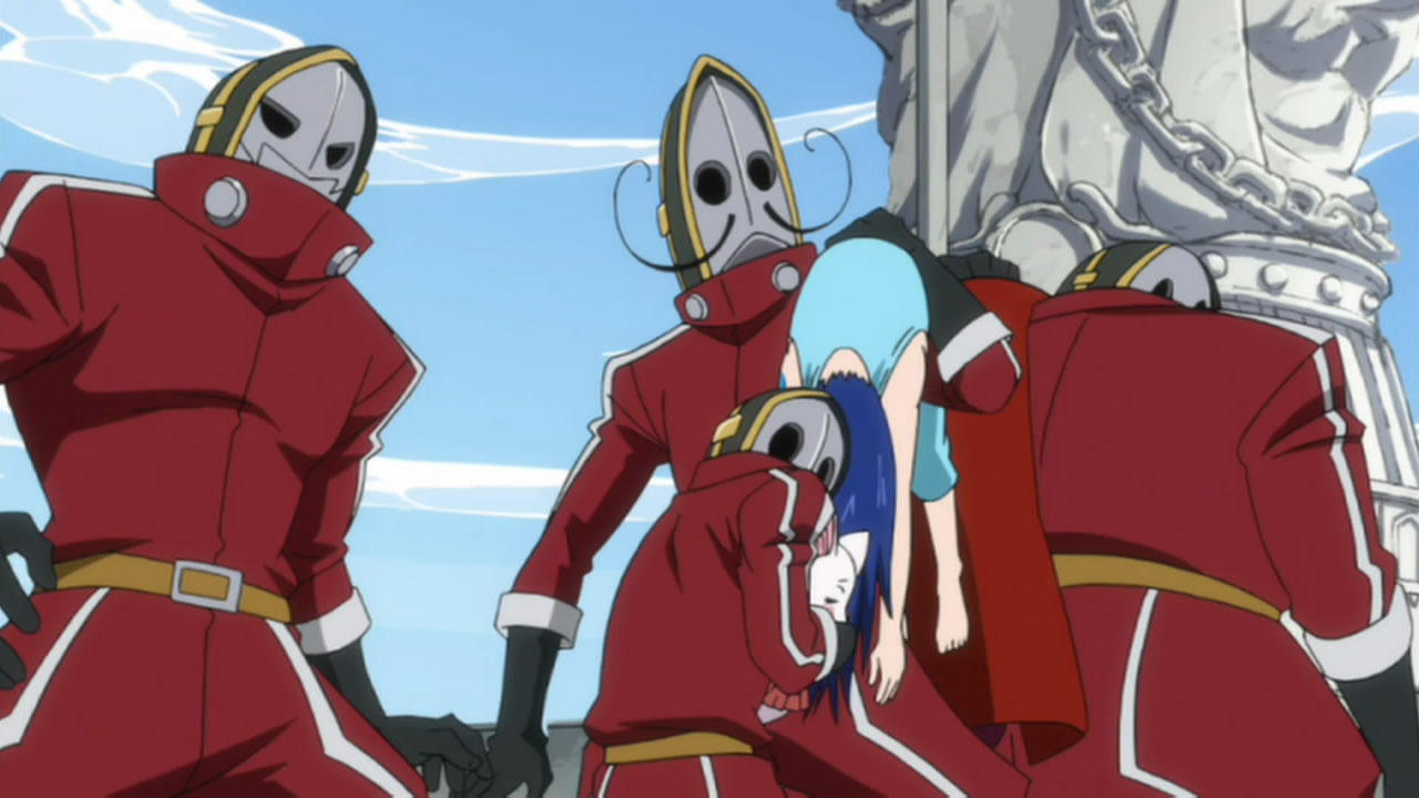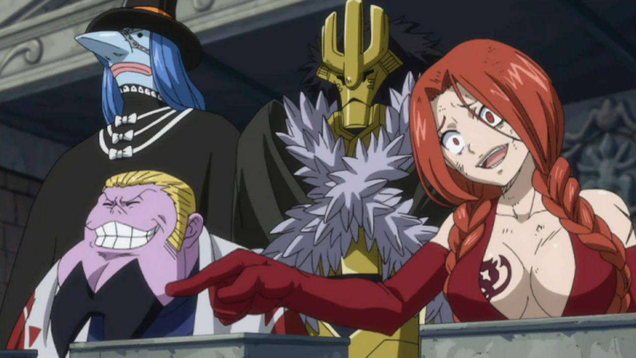 My feelings are all over the place after watching todays episode. There were so many moments that stood out in these battles. First of all, we had Tobys fight. It seemed like a kind and friendly fight, but seeing how Kurohebi ripped apart the dogs beloved sock made me feel sad and angry. Raven Tail is so far the worst guild Ive seen in this series. Theyre not your typical villains who simply want to see their evil plan bloom. No, theyre rude, evil, and condescending people. While I do admit that I did find Flare slightly likeable due to me being shallow and loving her voice actress, in general, I do not tolerate the behaviour Kurohebi showed Toby. And the same can be said about the people who targeted Lucy but caught Wendy instead. The royal guards are definitely up to something, and they have a lot of authority. Things are not looking good!