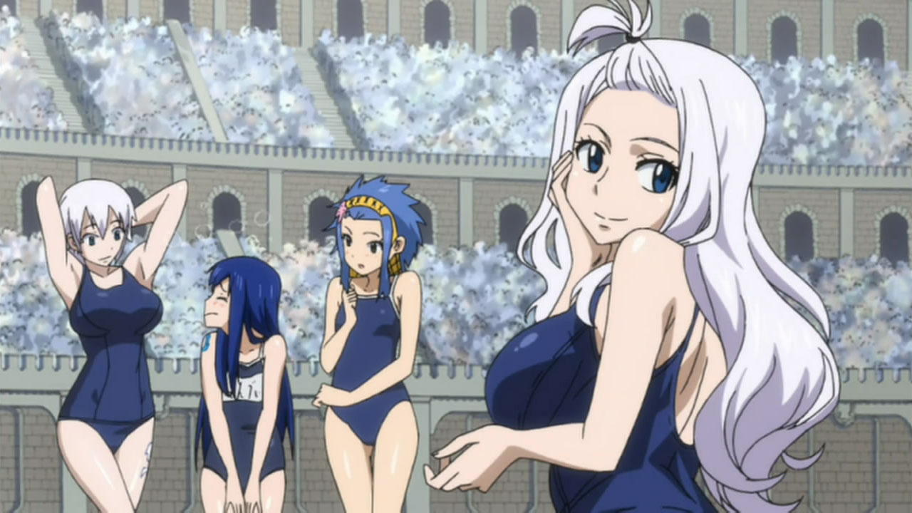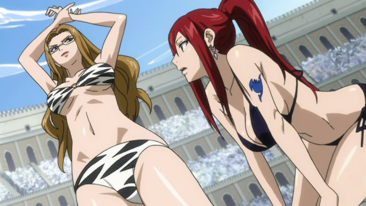 -No comment on Toby’s secret. My reaction was the same as Erza’s for that sock-ripping scene.-You can’t spell Elfman without MAN!!!-Is that next episode really showing a one-on-one duel, or why is there other female FT members participating in a swimsuit contest? Anyways, we’ll see fan-service for sure.