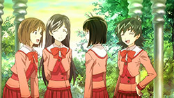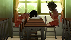 Quite liked this episode – not only because it involved character development for both Sasami and Kagami, but also succesfully combining a normal school episode with the supernatural weirdness of this show. The show’s small cast and random plot works in its favor here too, as the episode fits well into the whole (whereas this could be a slower episode in other shows) and I’m interested to see where this will go next. Plenty of funny moments again too, especially with Kagami’s snarkyness (her stoic voice really works in the delivery) and the antics of the myriad gods (that montage of their random murder attempts).