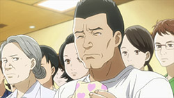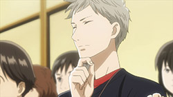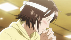 The one gaping hole in the drama is Taichi, who continues to be far outside the major events taking place and seemingly more and more plagued by self-doubt. At this rate any recovery for his arc this season is going to be difficult to pull off without feeling contrived, because he’s been an unimportant character for almost the entire season. There’s an interesting moment between Tsutomu and Sumire, though, as he proves his resourcefulness by actually figuring something useful out from her inane scouting reports (though this brief moment is the only focus his match gets), and a spark of something seemingly flies between them when their eyes meet (hurry up, Kana!). There’s also a very quiet but truly magnificent moment when we get a close-up of Akashi’s coach having one of his frequent breakdowns and the camera catches The Empress’ face as she reacts – so subtle yet amazingly real, Madhouse showing off their truly superb talent with facial animation.