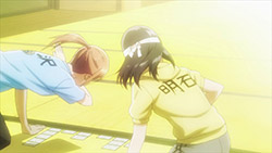 It’s funny that my initial reaction was that ep was a kind of official declaration that Chihayafuru was now a full-on sports shounen, because the series it most reminded me of this week was Ookiku Furikabutte. That, of course, is another genre-straddling series that looks like a shounen, plays like a josei (or even shoujo) and is classified as a seinen – and seinen may be the one major genre tag I’ve never seen applied to Chihayafuru. And you know, it kinds of fits – there are definite seinen elements to this show – but more than anything Chihayafuru remains a series that can’t be limited by any genre classification.