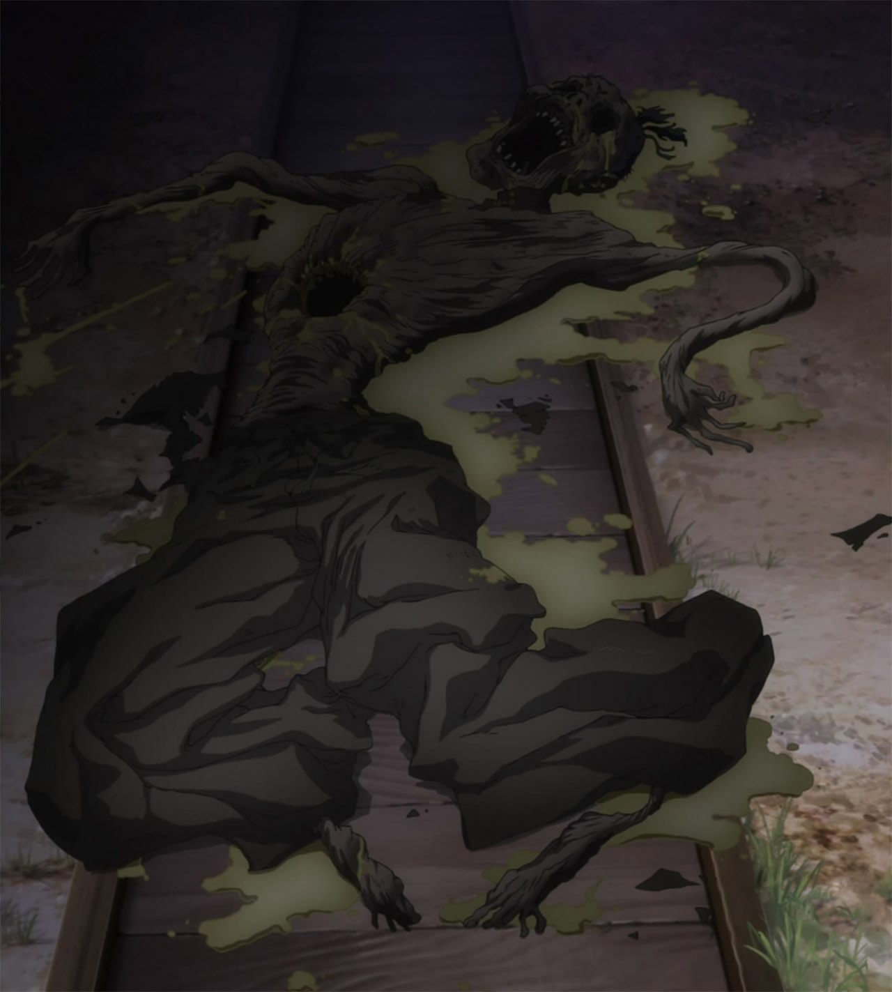 In truth, I could go on for a while – they kept subverting the horror by showing the creatures too soon (imagination is always worse than reality, Seven Arcs!), they showed off all the other spiders too soon and had the rest of the Mushibugyo show up before Jinbei had really done anything, and the whole “I’ve found my star” thing between protagonist Tsukishima Jinbee (Kenn) and Mugai (Terashima Takuma) came off as weird since it was all the other Mushibugyo members who did all the work up to that point. Oh, and they kept shoveling fanservice into creepy parts, which I did not appreciate.