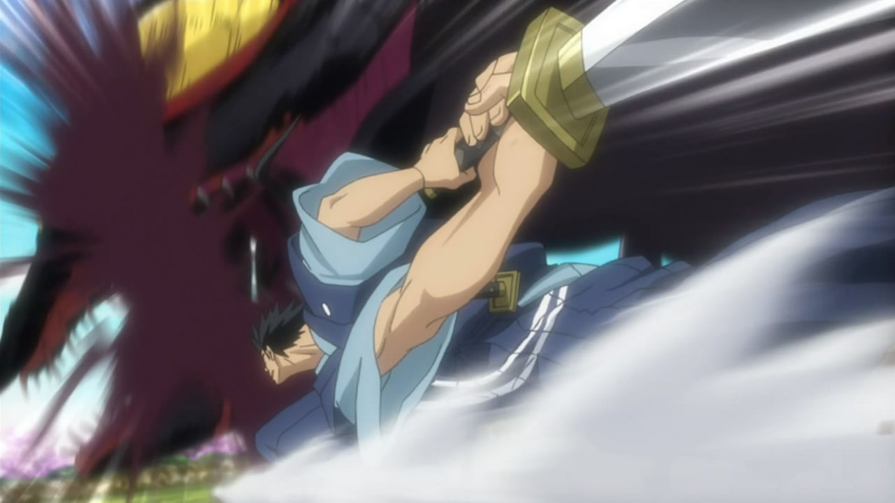 When I previewed this (hello, words-I-am-now-eating!), I talked about how surprised I was by the manga, and how it was so riveting I had trouble putting it down. Alas, you wouldn’t know that after watching this. This was the first episode, and they’re already rushing to cram content in – I think they covered 3 manga chapters in this first episode, including a double and triple-length one. And in doing so, they lost most of what made the manga so interesting. We didn’t see almost any of the awesome relationship between father and son, we didn’t get the humor when Matsunohara Kotori (Miyano Mamoru) traveled to their home to recruit Jinbei’s father (which didn’t happen in this adaptation), and most detrimentally, they shoveled back story into the middle of fights, disrupting the flow and making the cardinal sin of expecting us to car about characters before they’ve given us a reason to.
