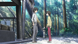 So apparently Wamiya turned out to be exactly as suspicious as he seemed. He is in fact not a student at all but supposedly Izumiko’s familiar. It’s explained in the episode, but Wamiya is basically a spirit which is meant to serve a greater spirit – in this case, it would be Izumiko. Sometimes they can be an animal spirit as well and it’s hinted that Wamiya would be a crow if he had a shape and form. Unfortunately he didn’t have any real identity until Izumiko wished for it. I would assume that Wamiya’s “spirit” has been wandering around the mountains for a long period of time waiting for Izumiko. He mentions that he wasn’t around until she cut her hair (back in episode 1); that it changed her powers and he was given a physical form. In reality then, Wamiyas being has been entirely created only recently.