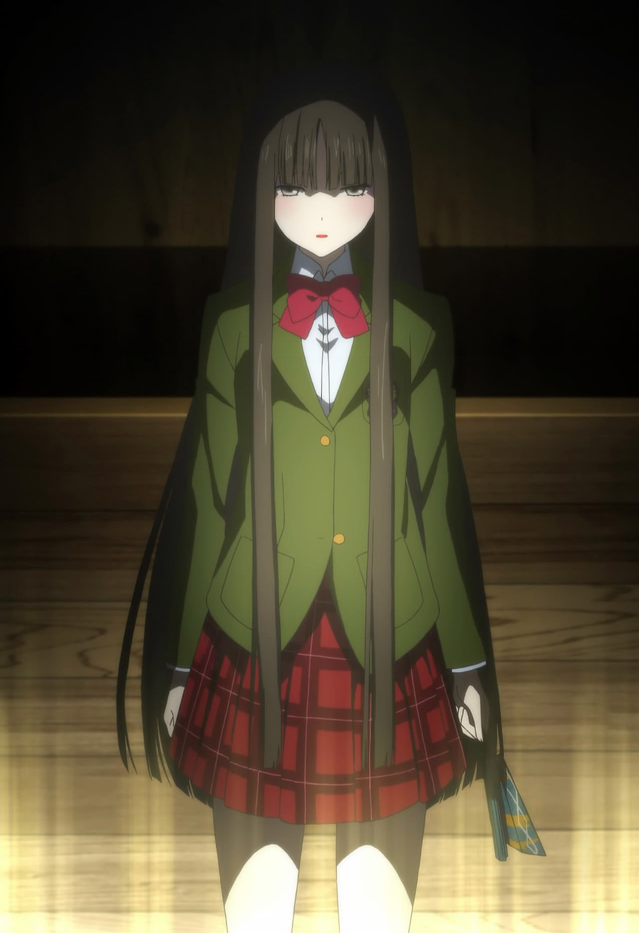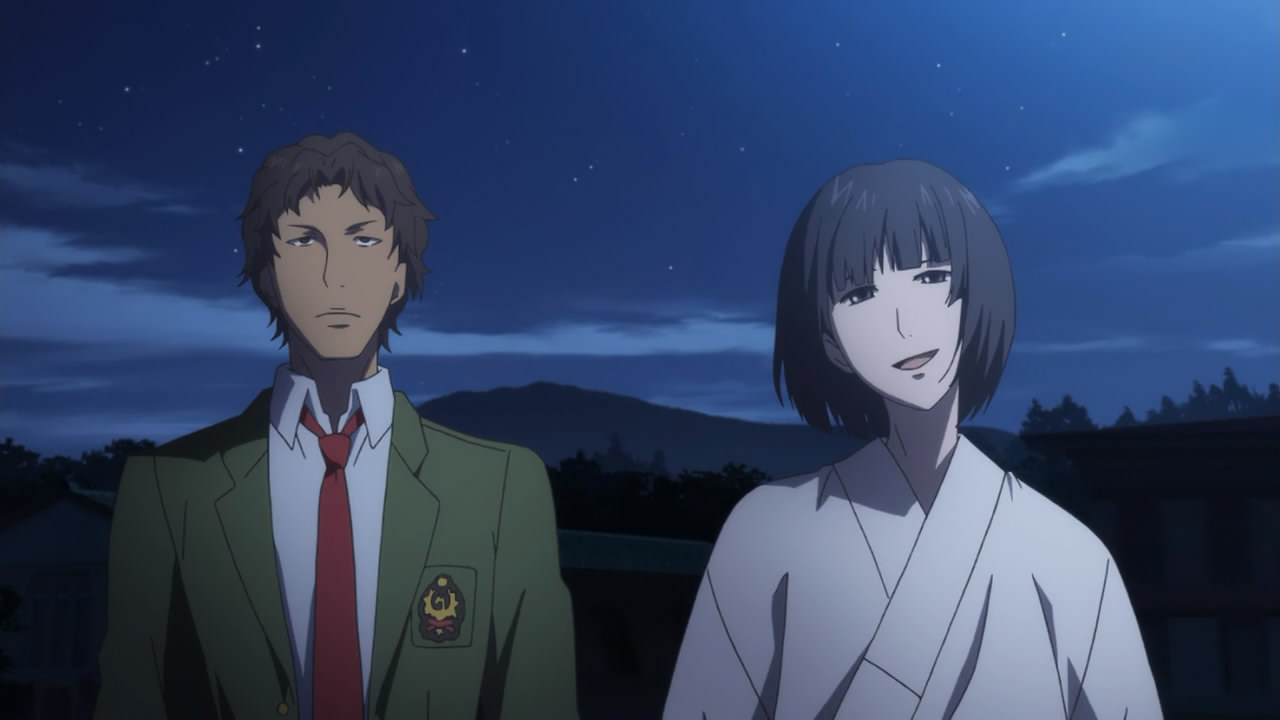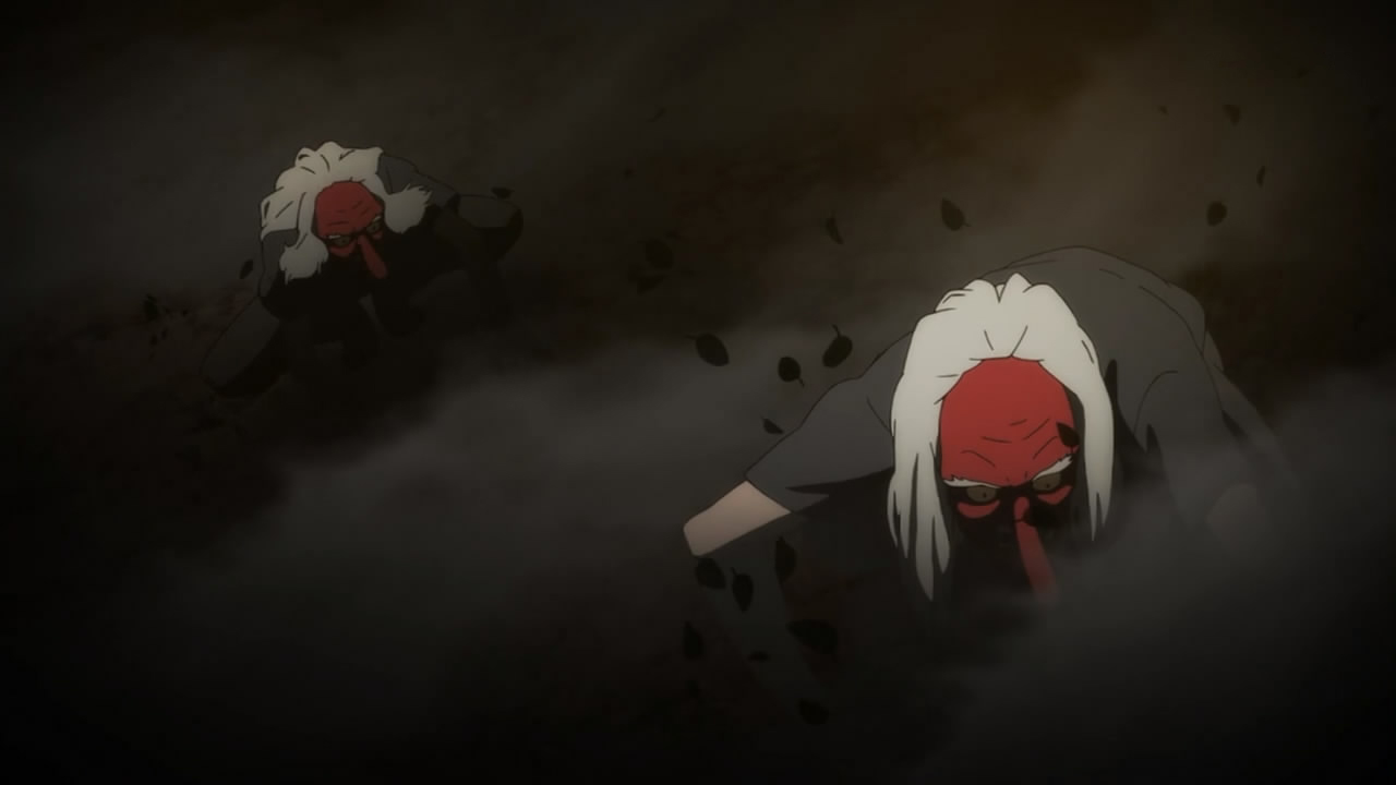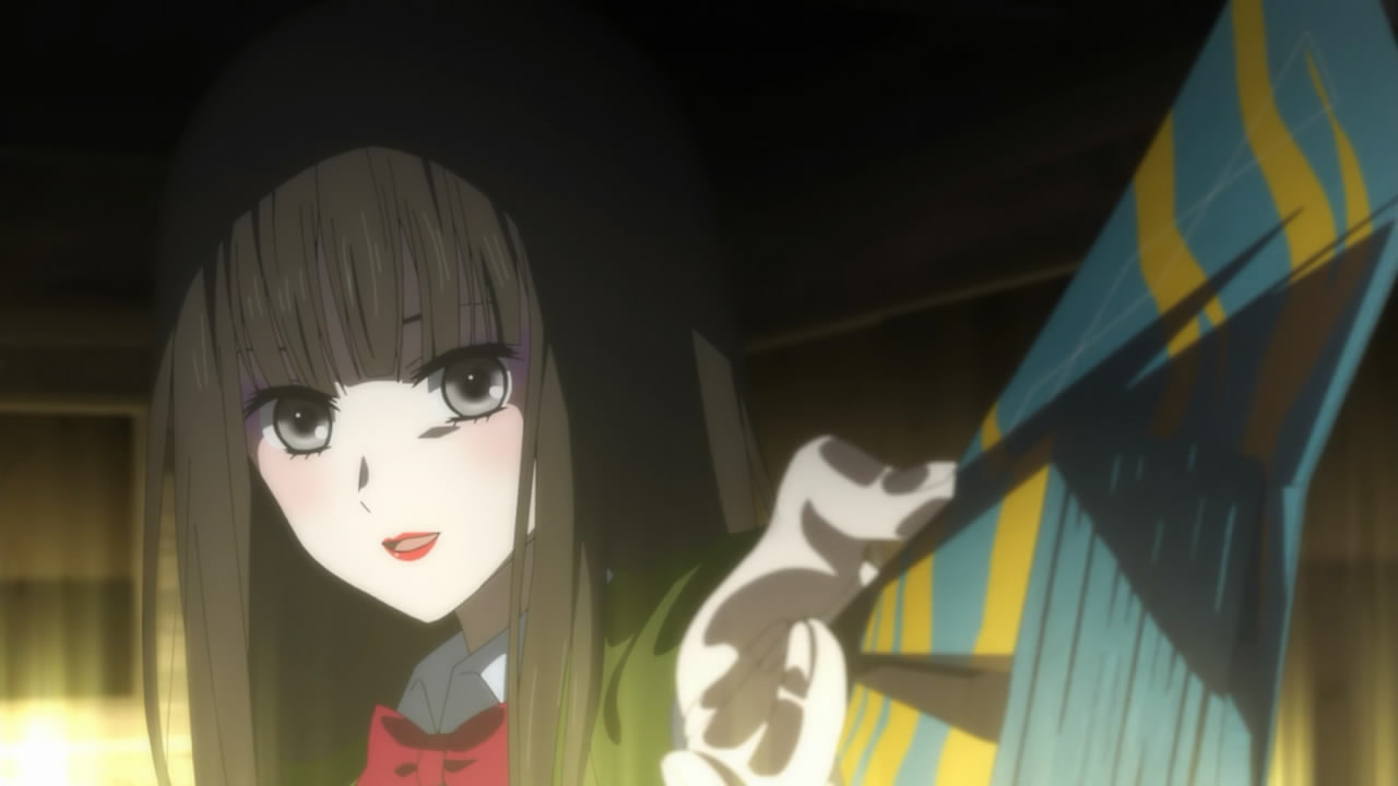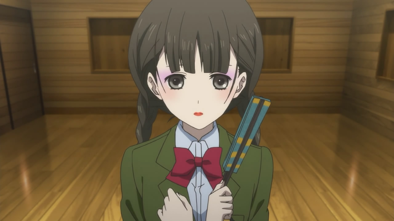Speaking of “neutral” parties, it appears as though the first ever student council president is still kicking around. Murakami Hodaka (Ishida Akira) invites Izumiko to dance for him while caking her face with make-up (not a fan of the look sorry!). Before she does though, Miyuki comes to the rescue! From what exactly? I’m not sure… It bothers me that Miyuki seems to know a lot of insider information that he’s hiding from Izumiko though. I think the audience is meant to feel the same way as Izumiko – a little lost and confused by her surroundings and ignorant to her importance and role. Anyway, I wouldn’t even hesitate to ask Miyuki about what’s going on because I would hate to know that others know more about me than I do. Izumiko is still very passive and introverted to me so it didn’t come as a surprise when the “spirit” within her took over and started claiming that Izumiko will be a “judge”. This confuses me even more because the spirit doesn’t seem to want to come to life and destroy mankind – although it’s not revealed how or why yet.