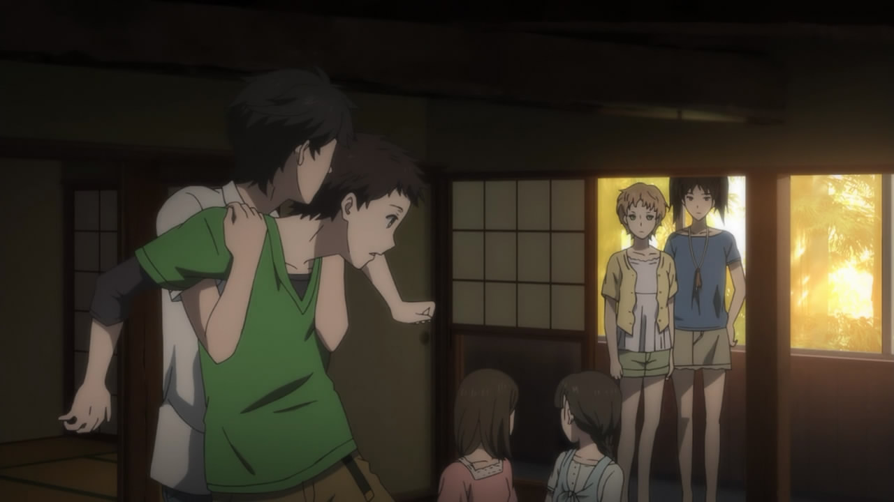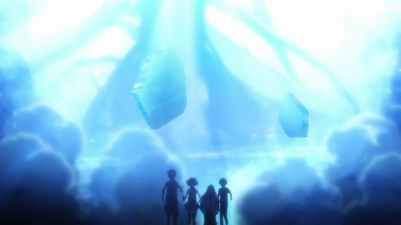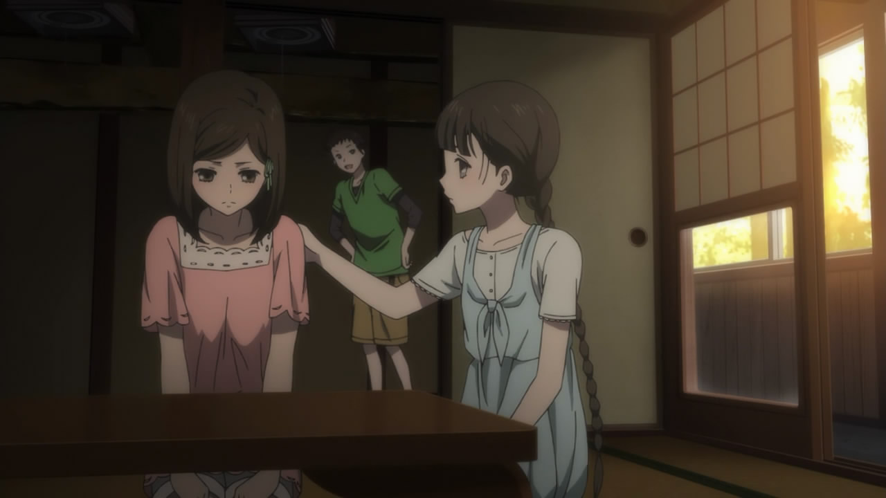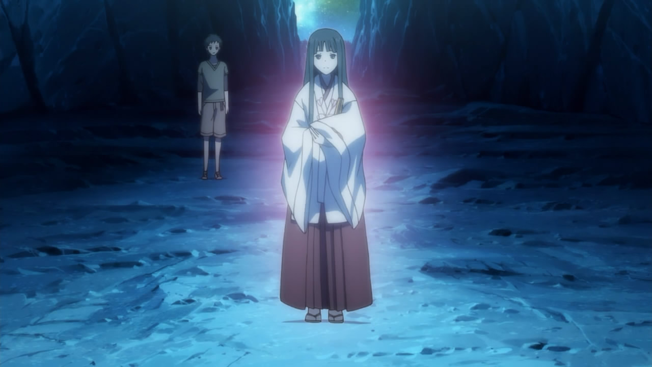 Regarding Masumi and the dragon spirit(Kuzuryuu):Ghost Masumi NEVER existed. What we have been seeing all this time is Kuzuryuu’s dreaming (ie.spiritual)form taking the form of Masumi.Although Kuzuryuu’s physical body was sealed behind the Celestial Rock,its spiritual form was not, and was able to manifest itself in a human form due to the deep wishes and spiritual powers of the Souda siblings combined together, who simply wanted their departed brother back with them.Recall how in ep 3, Wamiya said he was only able to assume human form due to Izumiko’s deepest desire for a friend and her spiritual powers(triggered by her haircut),and the end of ep 8,where Miyuki theorizes Wamiya took on that specific human form ‘because that’s the type of form Izumiko likes’. Similarly, Kuzuryuu’s spiritual essence assumed human form due to the Souda siblings’ grief and their combined desire for Masumi to return to them. Since Masumi was Manatsu’s twin, it was only natural for this physical form to look exactly like Manatsu(fairer complexion and slightly feminine voice notwithstanding). Although Kuzuryuu tolerated(and even enjoyed) hanging out with the twins, it was aware that any changes in the sibling relationship(death, emotional separation) would break the spiritual bond and render it unable to physically exist as Masumi any longer. Thus when Izumiko entered the picture, it saw an opportunity to free its physical form from its celestial prison through her help, and gain true freedom.As Guardian Enzo pointed out on his blog, Masumi/Kuzuryuu reflected the ‘capricious nature of the spirit world’, and the danger of dealing with entities whose thinking does not adhere with the human notion of social relationships.